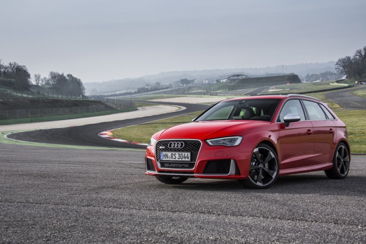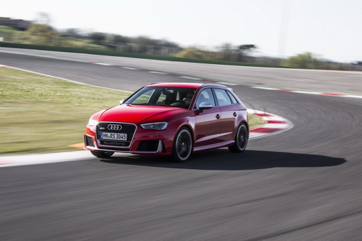 Although Audi Ireland has yet to confirm specifications, the RS 3 Sportback should feature, among some other stuff, 19-inch alloy wheels, Nappa leather sports seats, LED headlights and Audi's parking system plus over the already rapid and well-specified S3 model. The sticker price might be high at around €60,000, but when you consider what it saves you from buying, for the performance and practicality combined, then it actually starts to look like sensible money. Customers evidently think so too, and not happy with already spending as much, typically add around 20 per cent to the list price in options. You can pay to have the 250km/h electronic speed limiter raised to 280km/h too, though we cannot imagine why you'd ever want to if you do all your driving in Ireland...
