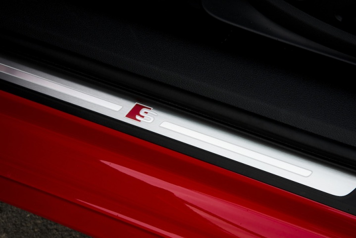Round the side, there are aluminium-look door mirrors and window trim, new side sills and bespoke alloy wheels (all cars at the launch wore 19-inch rims, though it's expected that Irish versions will ride on 18s as standard). Within those wheels are gloss black brake callipers with an S logo, which may be finished red optionally. The S4 saloon features a modest boot spoiler, though it can be instantly identified by its twin oval exhaust tailpipes on either side of a new rear bumper. A diffuser (in matt aluminium) is incorporated into that. Finally, and probably as significant as anything else, there's a 23mm drop in the ride height in comparison to a standard Audi A4.