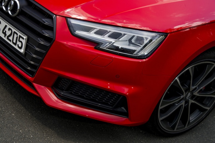 It's so easy to dismiss the current Audi A4 as a very restrained facelift of its predecessor, but you'll banish such thoughts from your mind as soon as you see one for yourself in daylight, as it's a sharper, more elegant looking vehicle with plenty of exquisite details to make its owner feel they're driving something special. That whole vibe is enhanced in the S4 thanks to a significant, yet still relatively subtle, S makeover. Up front, the grille is finished in 'twilight with double slats in aluminium matt', but it's the detailing to either side that grabs your attention. The LED headlights feature dynamically sweeping indicators (they're at the back too) and a daytime running light signature that combines with the matt aluminium inlays in the larger lower air intakes to emphasise the width of the car.