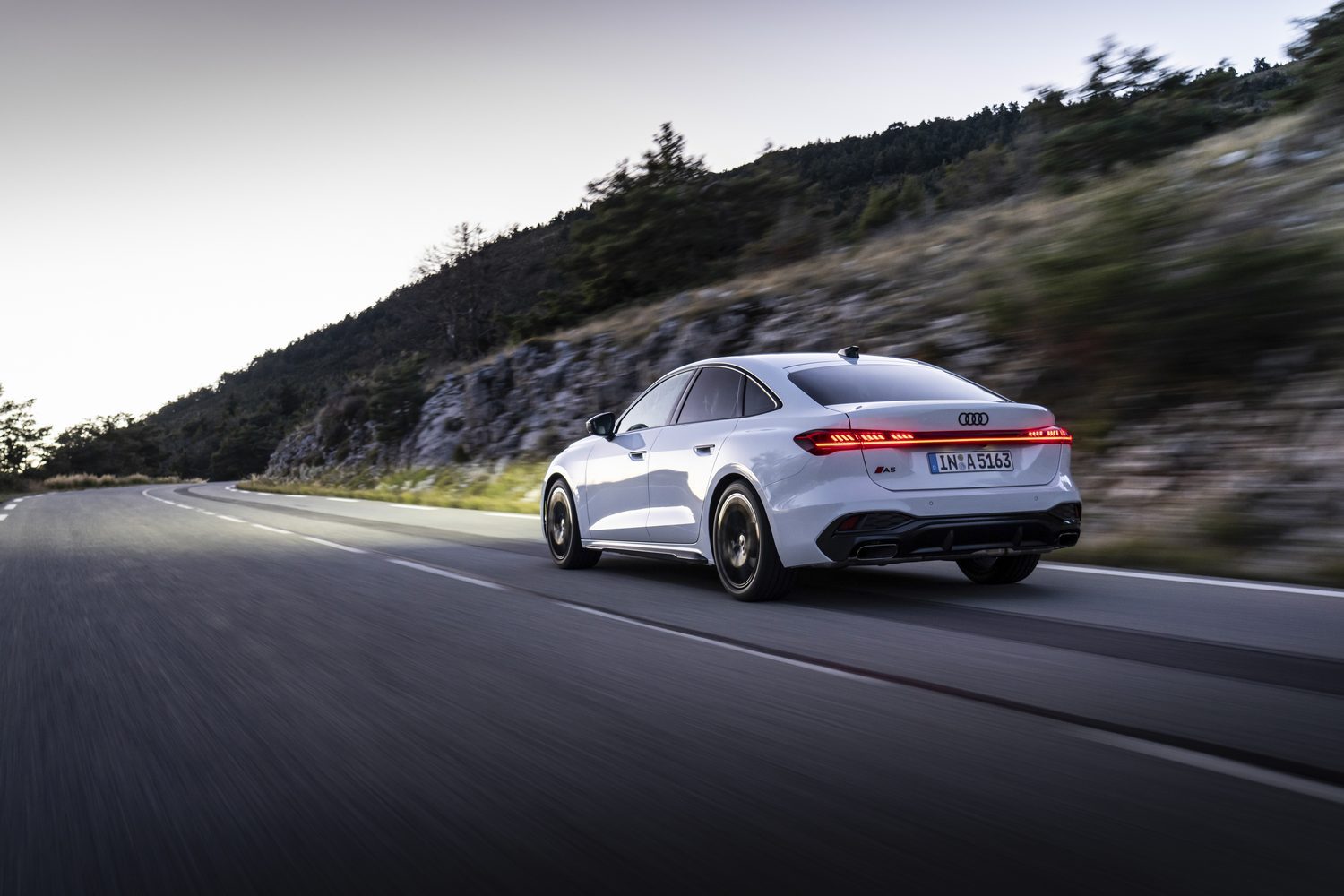 All versions of the A5 family, including the S5, have the huge digital interface as their centrepiece. It’s called the Digital Stage and features OLED technology, for both a standard-fit 11.9-inch instrument cluster and the big 14.5-inch infotainment touchscreen. You can even upgrade to have a 10.9-inch passenger touchscreen for the front-seat occupant, as well as a head-up display for the driver, so it’s a seriously high-tech interior. And that’s saying nothing of the eight assorted designs of LED daytime running lamp and taillight signatures you can cycle through, either.