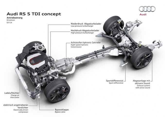 For now ignore what you see on the exterior of this car, as the real news with this RS 5 TDI concept is what lies underneath the bonnet. This is effectively a rolling development prototype, which, rather than being clad in the usual camouflage and cladding, was presented in the standard production exterior and interior of the current Audi RS 5.