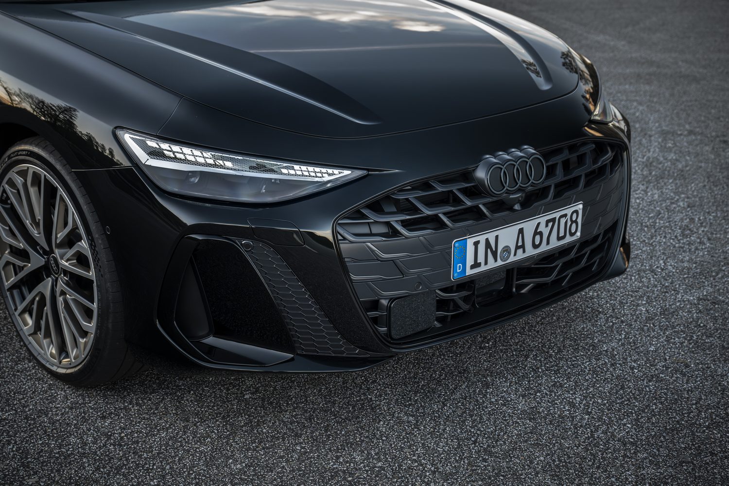 Up front, there's a new take on Audi's so-called 'singleframe' radiator grille. It protrudes and is set really low, visually lowering the nose of the car. Air inlets either side - referred to as air curtains - are part of the aerodynamic package and the detail design of the grille itself varies between SE and S line models.