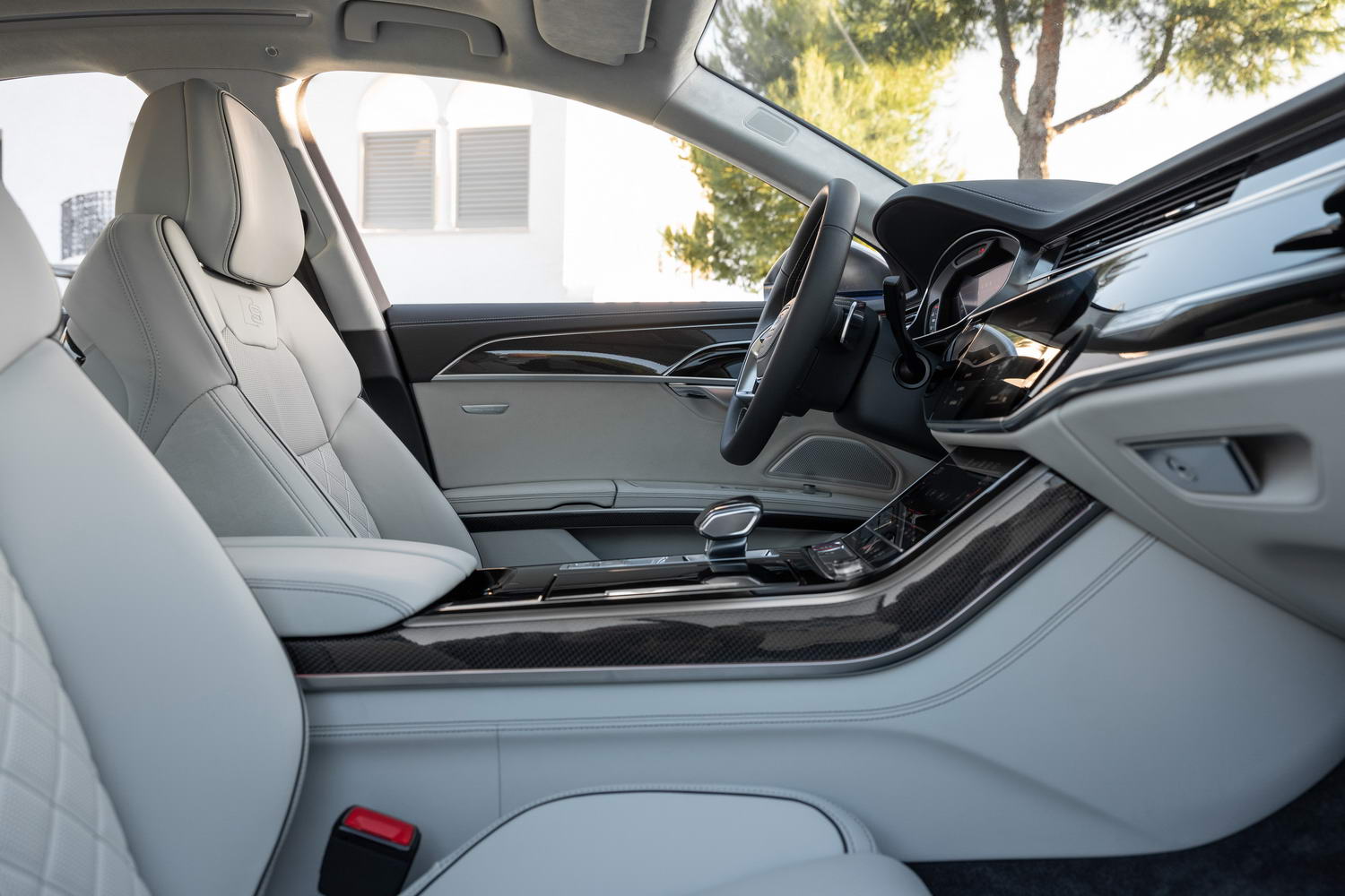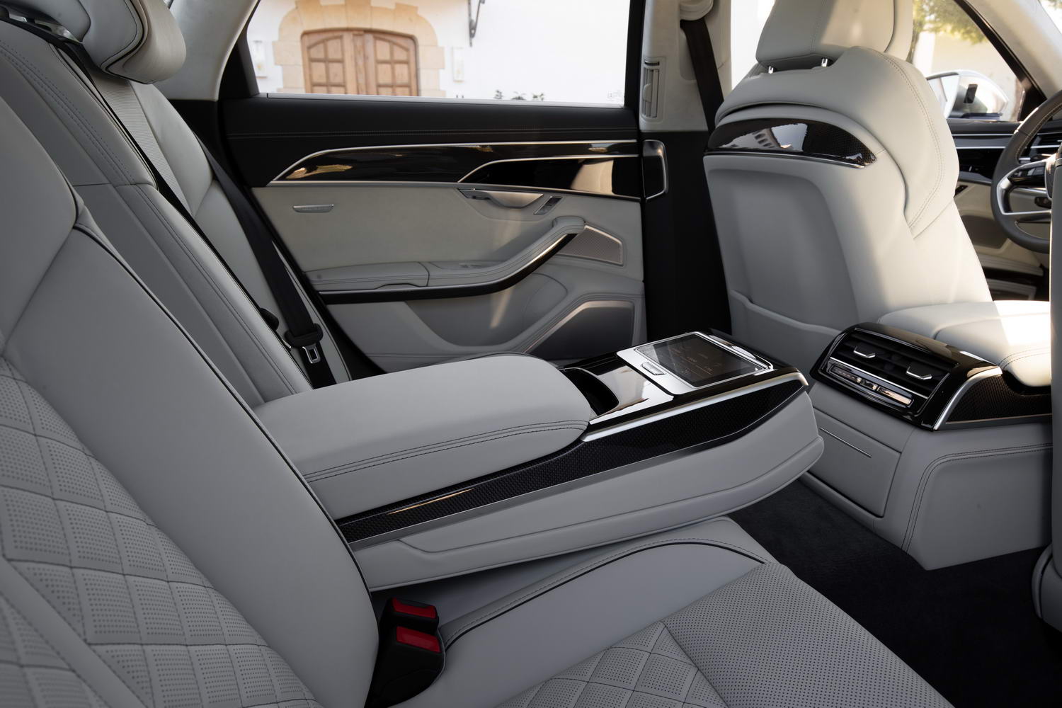 Ditto the interior, which is cultured and elegant rather than overtly sporty. There are little touches that might suggest there's something more under the bonnet than a 286hp 3.0-litre V6 TDI, like the diamond-stitched seats and the door sills, but it's basically an A8's cabin. Which is no bad thing, because the A8's cabin is a belter, which means - in turn - so is the S8's interior. There's that wide, minimalist dashboard predicated on a lovely two-tier architecture, there are the three crisp screens of the latest Audi MMI digital interface, there's the 'broad mushroom' gear lever (which is being superseded in other models in the marque's portfolio by the smaller, electric-razor-like stub of a thing instead) and there's a four-spoke steering wheel with a perfectly round circumference and a pleasingly thin amount of padding on it. Spectacularly showy, the Audi S8's passenger compartment is not; beautifully made and appointed, ergonomically faultless and a wonderful place to spend lots of time, it most certainly is.