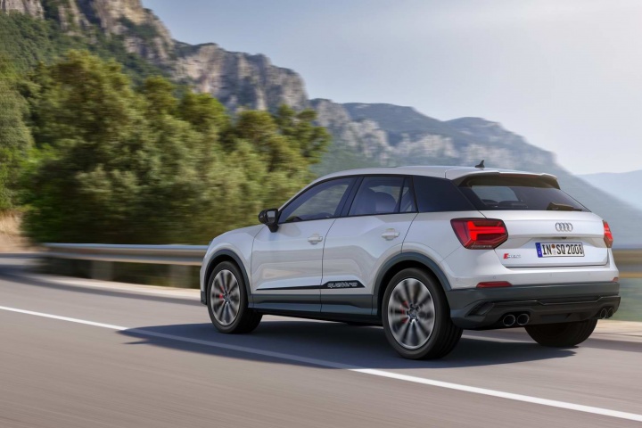 Yet, while these things might annoy those who are looking for a high-riding hot-rod, we happen to think they play in the SQ2's favour. Again, we've already mentioned that the driving position is suitably sporty and, to drive, the SQ2 feels 99 per cent akin to a hot hatch. Part of this is because it is only 95kg heavier than an S3 Sportback, which is basically one big passenger's worth of ballast, and its 400Nm of torque negates the possible issues that weight gain might have on performance. Any gear, any drive mode, any engine speed, the SQ2 is properly quick - and Audi has enhanced its soundtrack to make this one of the most appealing 2.0-litre four-cylinder noises we've heard yet. So, it definitely has the straight-line go to thoroughly merit the little red flash logo on the boot and its quad exhausts down below.