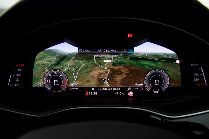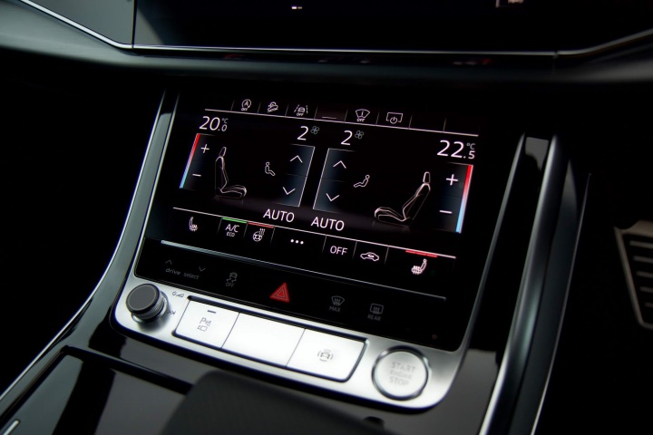 That goes too for the cabin, which looks and feels terrific, although that does come with the caveat that you can have the same twin-screen layout in other Audis with a much less stratospheric price tag. You probably won't care much, though, as the Q8 gets an awful lot right. The frameless doors add a little touch of theatre to getting in and out, and the seats are so well-appointed that I might just sell up and move in. The three digital displays - Virtual Cockpit instruments and upper-and-lower deck infotainment and HVAC controls - mean that there are hardly any physical buttons inside, which means you get a very clean cabin layout. Oh, and actually there's a fourth digital display - a head-up projector, which more or less renders the Virtual Cockpit display redundant.