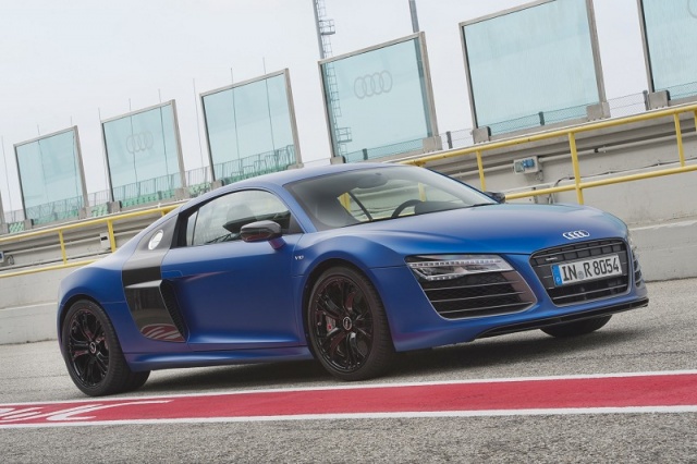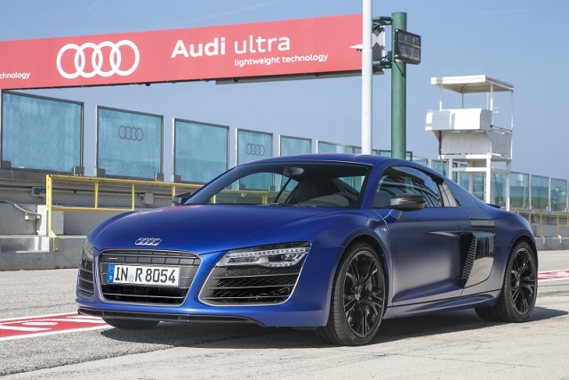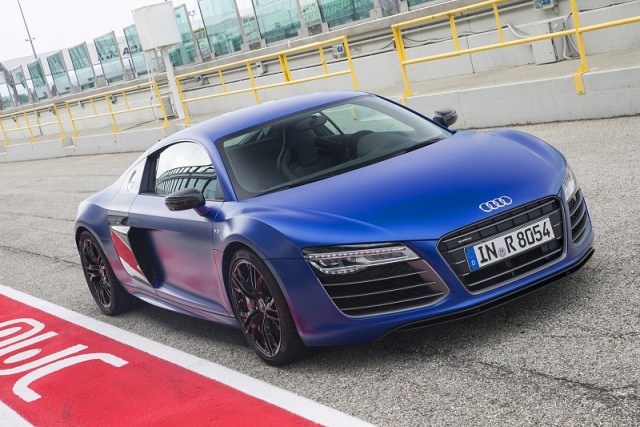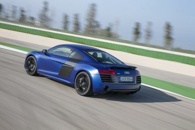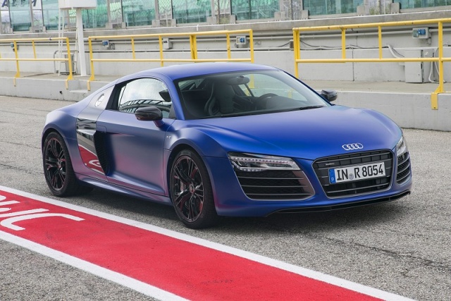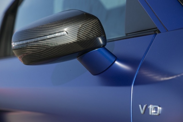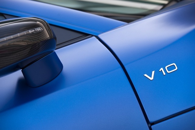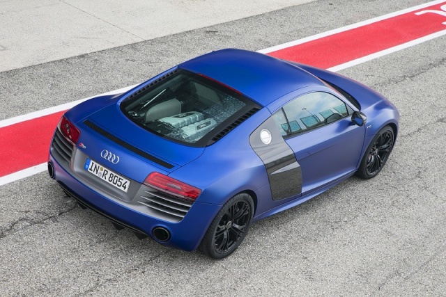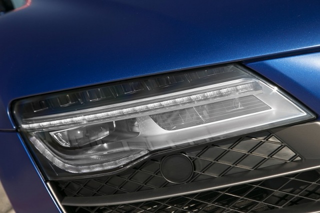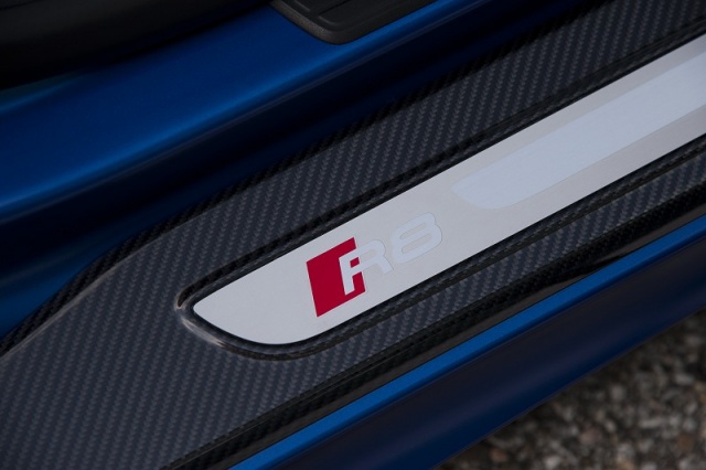 The V10 plus model is differentiated by carbon fibre sideblades, its own set of forged 19-inch alloys and other detail changes. The matt blue paintwork of the car in the pictures is also unique to the plus version. What you can't see is the 50kg weight reduction - in comparison to the regular R8 V10. This is attributed to the wheels, insulating materials, front and rear carbon fibre aero elements, carbon brakes, unique suspension and deep sports seats.