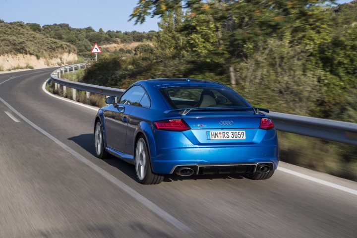 That charismatic five-cylinder Audi sound is produced by an engine that's seen some serious revisions over its predecessor. Weight is down thanks to an aluminium block, magnesium sump cover and other lightweight components seeing the engine shed some 17kg in bulk, despite power swelling significantly. The headline figure here is 400hp, comfortably more than any of its direct rivals, and a 60hp leap over the previous TT RS. Torque grows too, the maximum 480Nm arriving at just 1,700rpm and hanging around until peak power starts taking effect just shy of 6,000rpm. The numbers are impressive and the TT RS takes just 3.7 seconds to reach 100km/h from rest, which is just 0.2 seconds behind its R8 big brother - serious stuff indeed. With its standard quattro four-wheel drive system and a seven-speed twin-clutch automatic transmission, traction is, unsurprisingly, high, while individual wheel braking improves turn-in response and agility. The TT RS is therefore hugely capable of carrying its speed, as, indeed, was the old one.