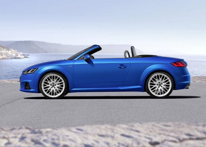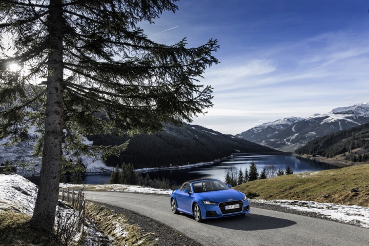 Apparently, the original Audi TT was conceived as a roadster, even if the coupe's shape has become the iconic signifier of Audi's compact sports car. If there is a better-looking car at or under the TT Roadster's price point, we've not seen it. The new model continues that tradition with real conviction. There's a technical edge to its looks, Audi's more assertive front grille, framed with the cool headlamps and driving lights, presents a bolder TT to the world and one that Audi says has driving dynamics to match its dramatic looks.