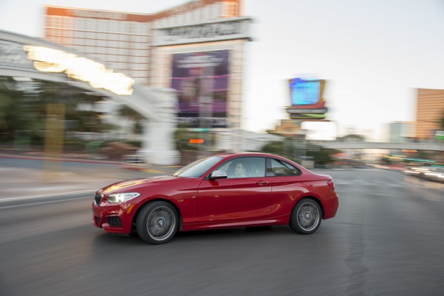 Speaking of which, the M235i comes as standard with a six-speed manual gearbox, which we would probably stick with, but the optional eight-speed automatic is really rather good. The Sport version was fitted to the test cars in the States, which brings with it launch control and tactile gearshift paddles behind the steering wheel. The transmission is as quick-witted as it is smooth in its changes so it makes for a satisfying drive. It certainly doesn't feel any less sporty because of it.