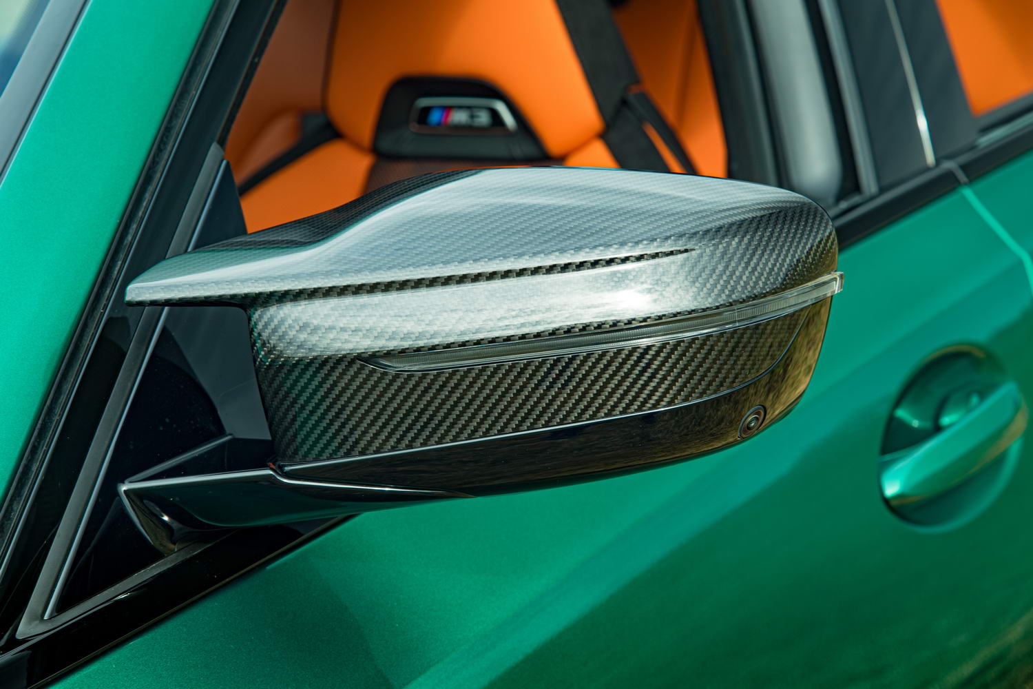 And one with an exemplary cabin. BMW has made the steering wheel just a little less chunky in the padding department than in other sporty models, has blessed the M3 with a divine set of carbon shift paddles on the wheel for the eight-speed M Steptronic gearbox, has sprinkled yet more carbon about the place and has also added an M Mode to the 12.3-inch digital cluster that really focuses the graphics into a pleasant and informative display. Add in that our test car had the spectacular M Carbon bucket seats, which will be a pricey cost option but so, so worth the money, and it all adds up to a phenomenal passenger compartment. And one that has genuine space in the back for two, maybe three adults, as long as they're not all gargantuan of frame.