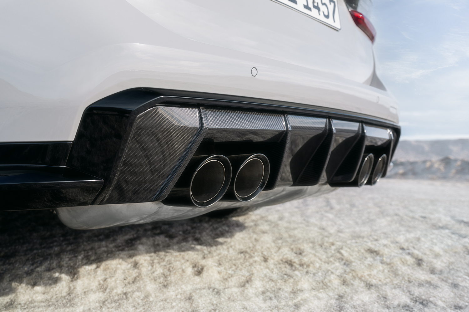 Happily, the M3 allows you to mix and match these settings to suit your needs, so you can choose comfort suspension while still enjoying the sportier steering and brake. And that isn't all you can tune, with three different levels for gear shift ferocity and three modes for the all-wheel-drive system. The standard setting is great, offering loads of traction at any given moment, but the 4WD Sport setting offers a more rear-biased setup for slightly more sideways antics on track. Or you can switch the car into rear-drive mode for an even more visceral experience, aided by a traction control system with 10 different levels of slip.