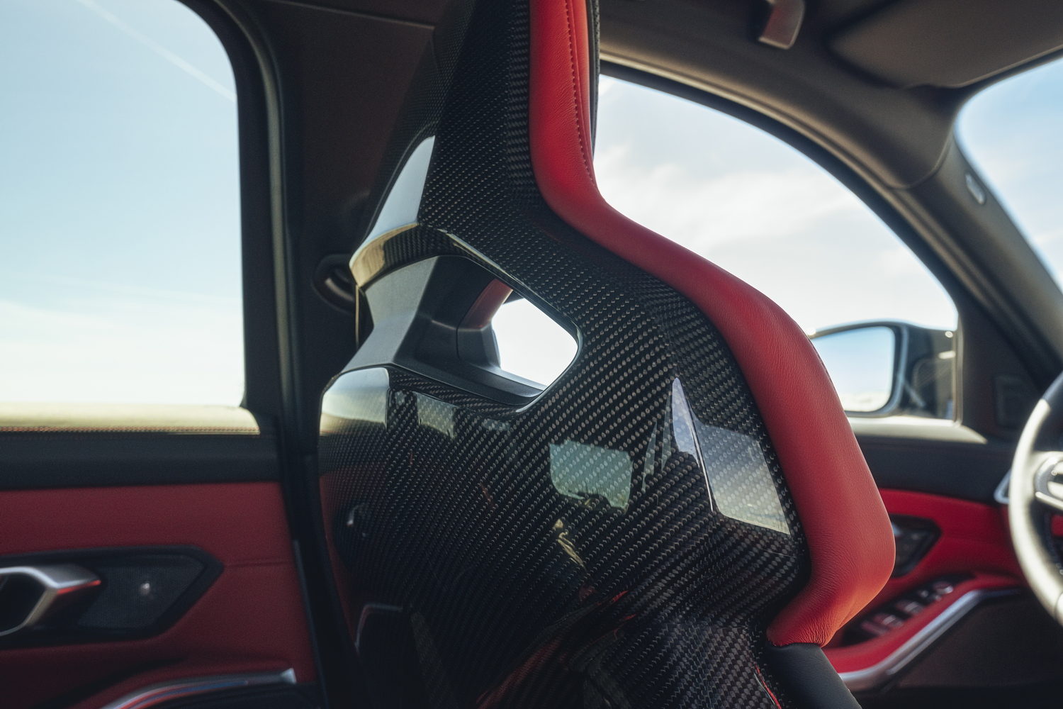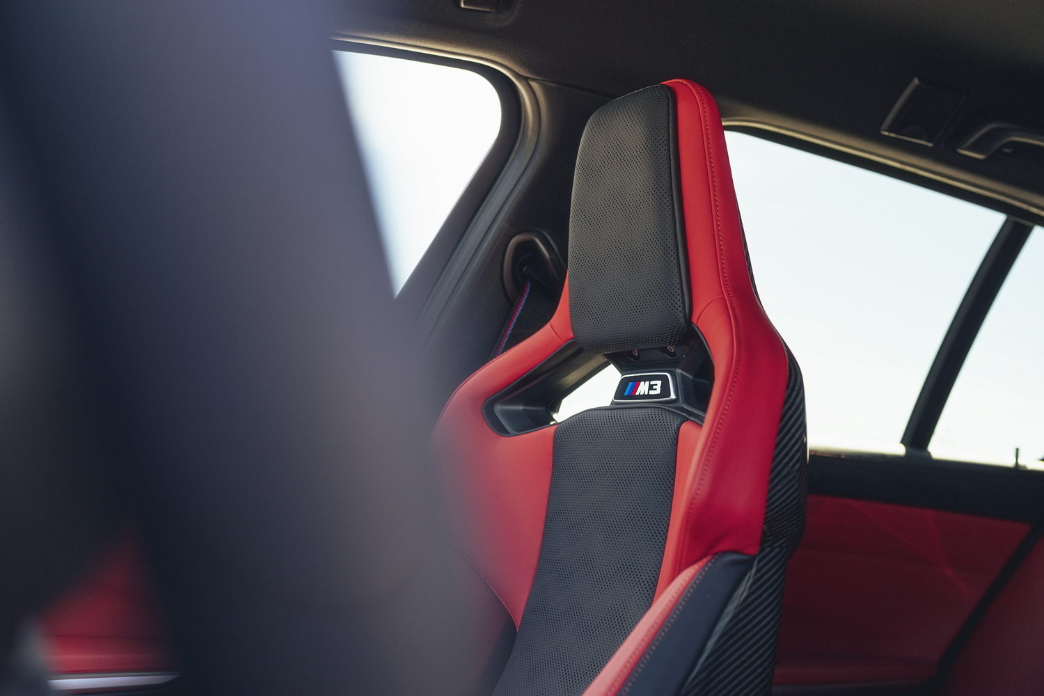 The interior is pretty similar, too, with the cabin dominated by BMW's Curved Display. The single wide housing includes the touchscreen infotainment system and the digital instrument cluster, which sits behind the steering wheel. That's par for the course in latest-generation 3 Series and 4 Series models, including the M cars, but the high-performance models are differentiated slightly.