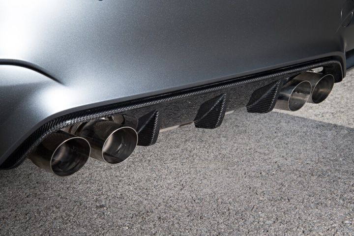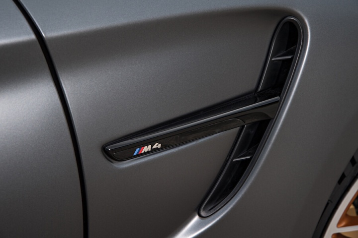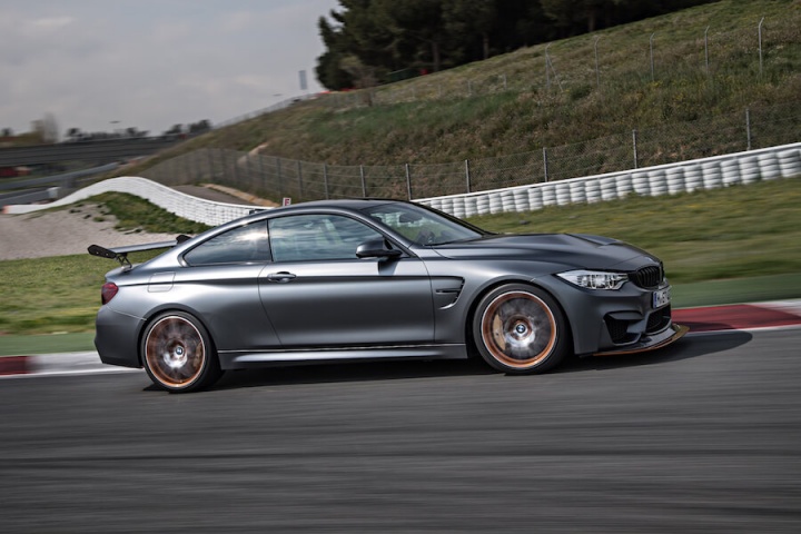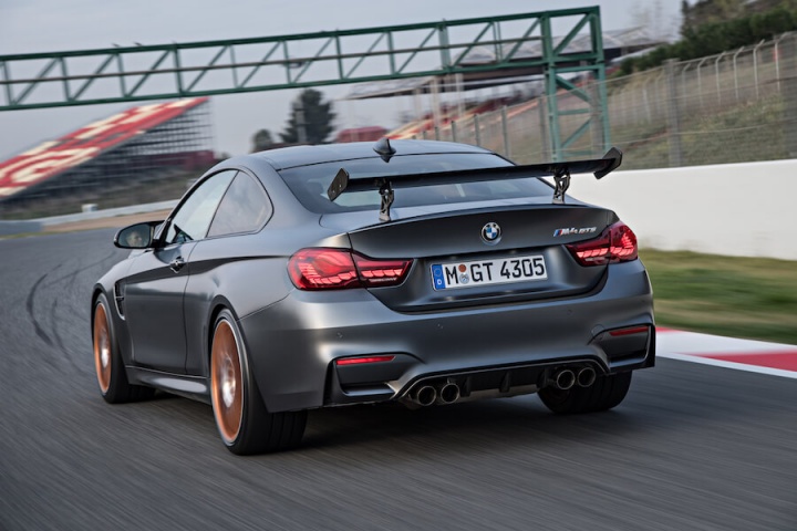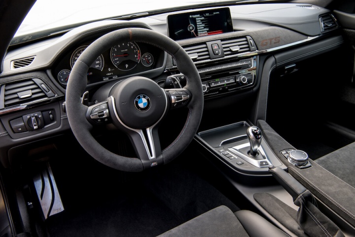 Power grows to 500hp, while torque is up to 600Nm too, which, allied to some significant weight reduction, makes for a far more accelerative and intense M4. The suspension has a track bias too, the coil-over set-up offering lots of individual adjustability, allowing it to be changed to your preferences and the track you're at. Weight has been lost thanks to the binning of the rear seats, the addition of lightweight front bucket items, a unique carbon fibre bonnet and a titanium exhaust. M division's mass reduction hasn't stopped there, going so far as to chuck out the standard door cards for lightweight ones with simple straps, and if you choose the (€12,000 before VRT) carbon fibre wheels you'll shave a further 7kg off the unsprung weight. There's a Clubsport option as well that adds a cage, proper six-point harnesses and a fire extinguisher. Basically, the GTS is a thinly-disguised racer with number plates.