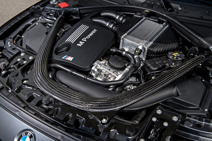 There's a reduction in internal inertia of the engine thanks to a lighter crankshaft, while the entire engine benefits from a weight reduction thanks to the loss of the cylinder liners - BMW M instead using an arc-sprayed coating. There's an aluminium oil sump too, though the most innovative addition is the water injection system, which injects distilled water into the intake plenum chamber, cooling the intake air, reducing pre-ignition knock and allowing an increased effective compression ratio and bigger boost pressure. Those injectors are fed by a water tank in the boot, though it only operates at 5,500rpm and above. Nonetheless, the other engine changes are apparent across the lower arc of the rev counter's sweep. There's a more forceful shove in the back from low revs and the throttle is far sharper than the standard M4's - the loss of some rotational mass means it's even more eager to rev, too.