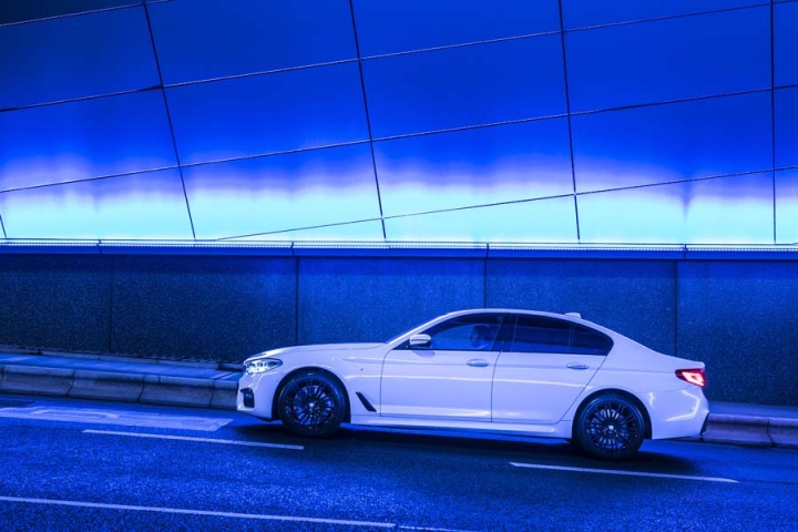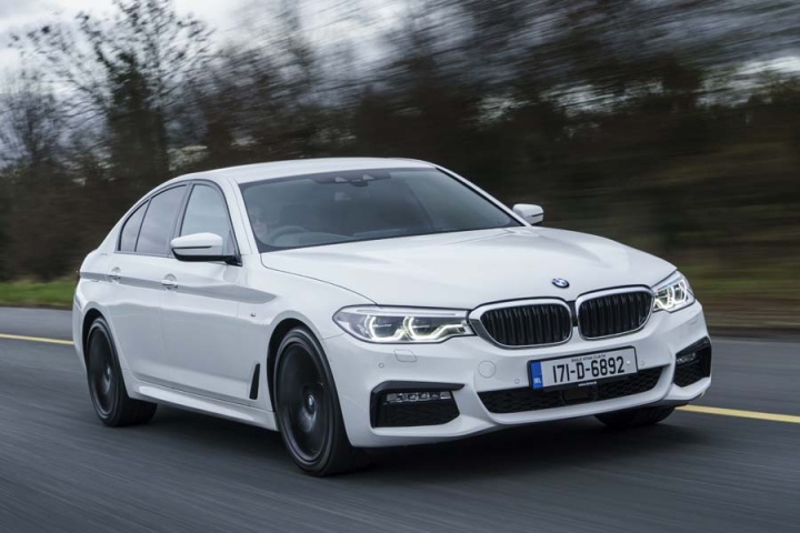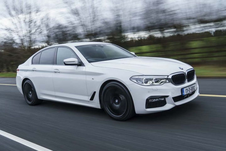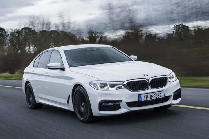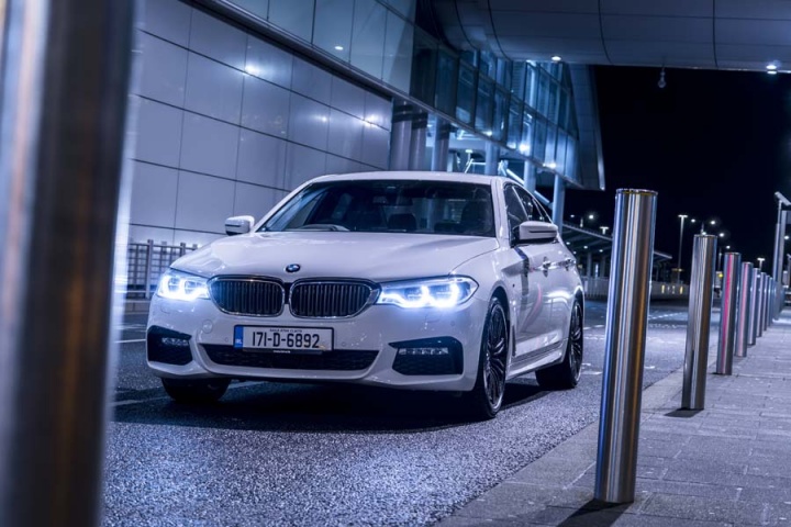 Having previously experienced a number of variants overseas, we've now had the chance to test the all-important 520d on Irish roads. Other than the badge on the boot lid (which can be deleted, of course), there's little to distinguish it from the rest of the range, especially if you go for the M Sport specification that our test car featured. It's a sharp-looking thing, and immediately makes the outgoing F10 model appear old hat. The sheer size of the front kidney grilles may shock some, but overall we reckon that BMW has scored a winner here. Despite the car being slightly bigger than its predecessor, it's actually lighter, thanks in no small part to widespread usage of aluminium for the chassis and body panels. This particular car rides on 19-inch rims, and while the white body and black wheels combo won't be to everyone's taste, it definitely gives the 5 Series some serious road presence. Lighter colours also highlight the body detailing much better in the flesh.