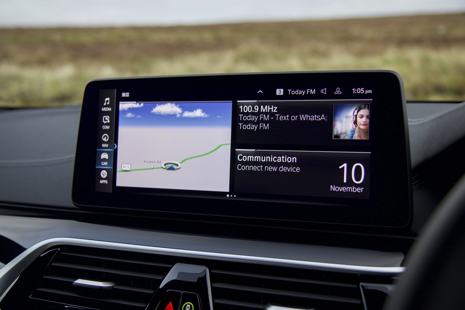 Of course, there is that screen and the BMW iDrive system (the 545e runs version 7.0 edition of the software) is a fairly clear and easy-to-navigate infotainment setup. Certainly, all of the graphics looks sharp and suitably expensive, but there is a little over-complication in that you can control the screen either with the iDrive click-wheel down on the centre console, or the buttons on the steering wheel, or the screen itself is a touchscreen, or there's voice control, or for some functions there's (entirely pointless) 'gesture control.' It's nice to have choices, but this is a bit much.