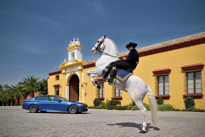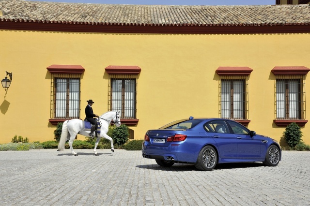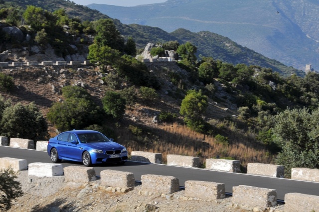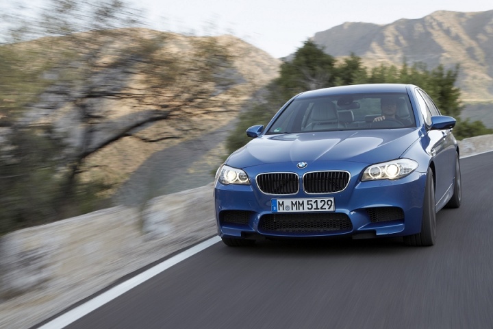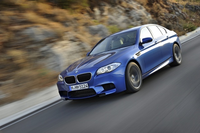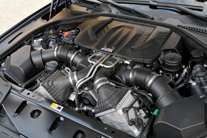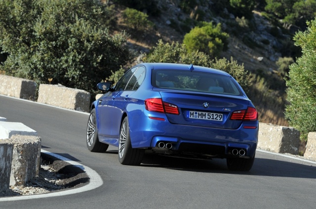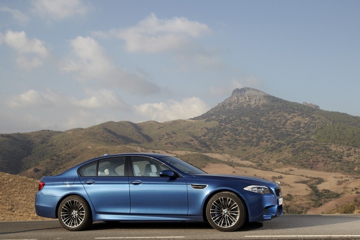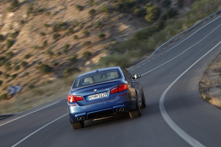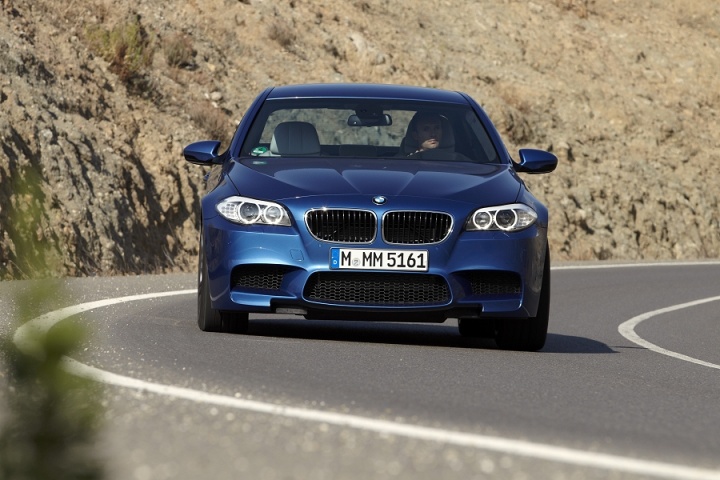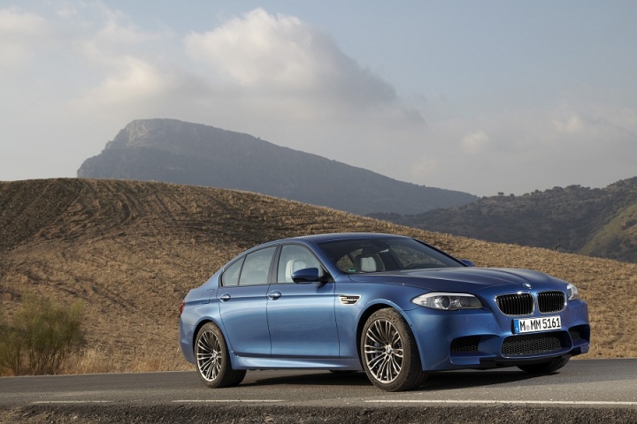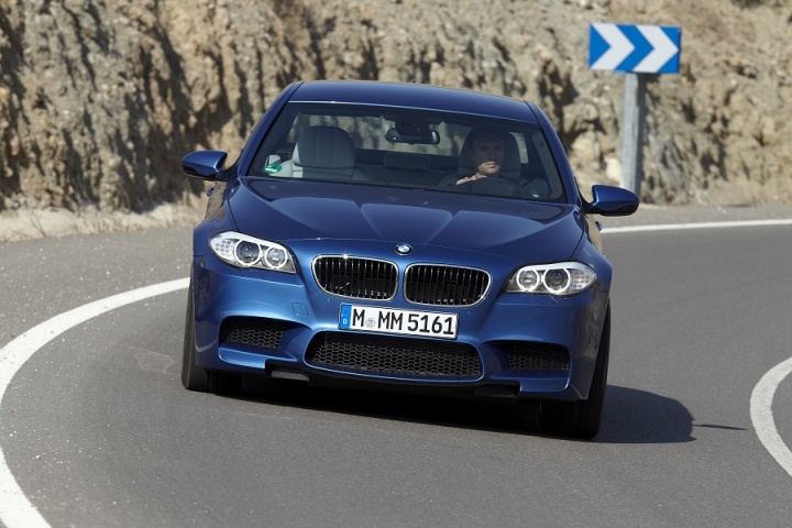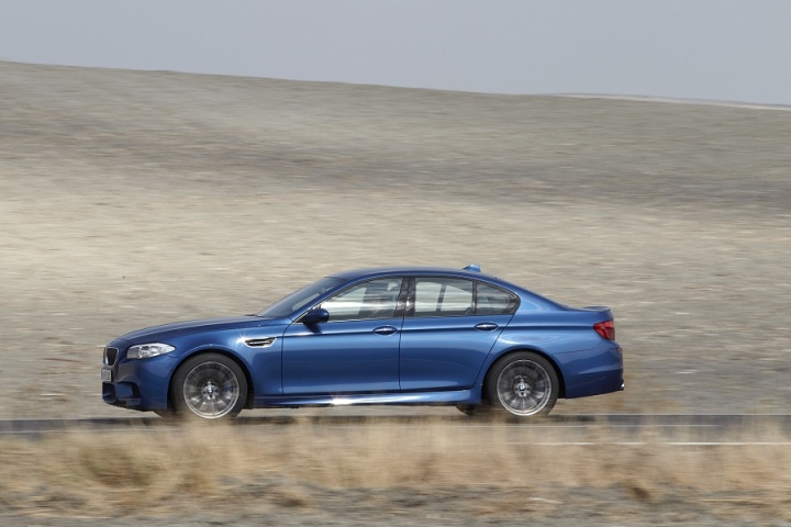 Suddenly the M5 feels much like the old one. Though it's noticeably quicker. Along with a 10 per cent hike in power the torque peaks at 30 per cent higher. More importantly, while the E60's maximum torque was at 6,100rpm, the new car's is available all the way from 1,500 - 5,750rpm. This means ballistic pace at pretty much any engine speed. Fans of the V10 engine of old may miss its scream, though the new twin-turbo V8 makes a unique range of sounds of its own, from the rumble at idle to a full-bore bellow at speed. It sounds nothing like AMG's rival 6.2-litre V8 and it's certainly worthy of the M badge.
