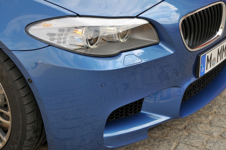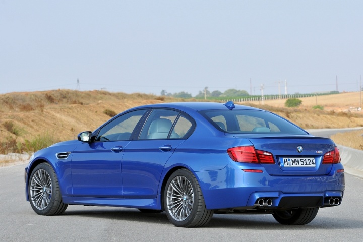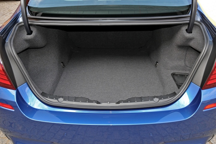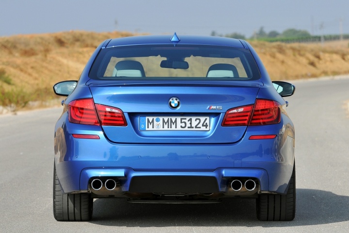 While thousands of owners of M Sport cars may not agree with us, we reckon that the M-car look has been diluted by the very existence of the sporty trim level. However, as is often the case, pictures do not do the new M5 justice. It's just butch enough to stand out, yet in a subdued colour should remain restrained enough to use without attracting too much attention. The usual M-car characteristics are present, including gaping front intakes, air outlets in the wider front wings, 19-inch alloys, a modest boot spoiler, rear diffuser and last, but not least, the quad exhaust set-up.