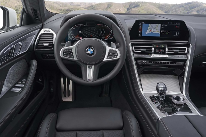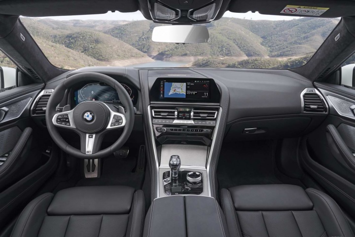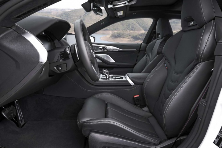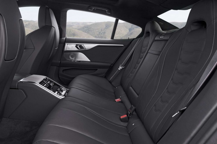 Unsurprisingly, the dashboard and front two seats of the Gran Coupe are just the same as in the 8 Series Coupe, which means loads of technology, very high quality, one of the best infotainment interfaces in the business and large digitally rendered instrumentation in front of the driver. The excellent head-up display is standard, as is gorgeous leather upholstery and split-folding rear seat backs.