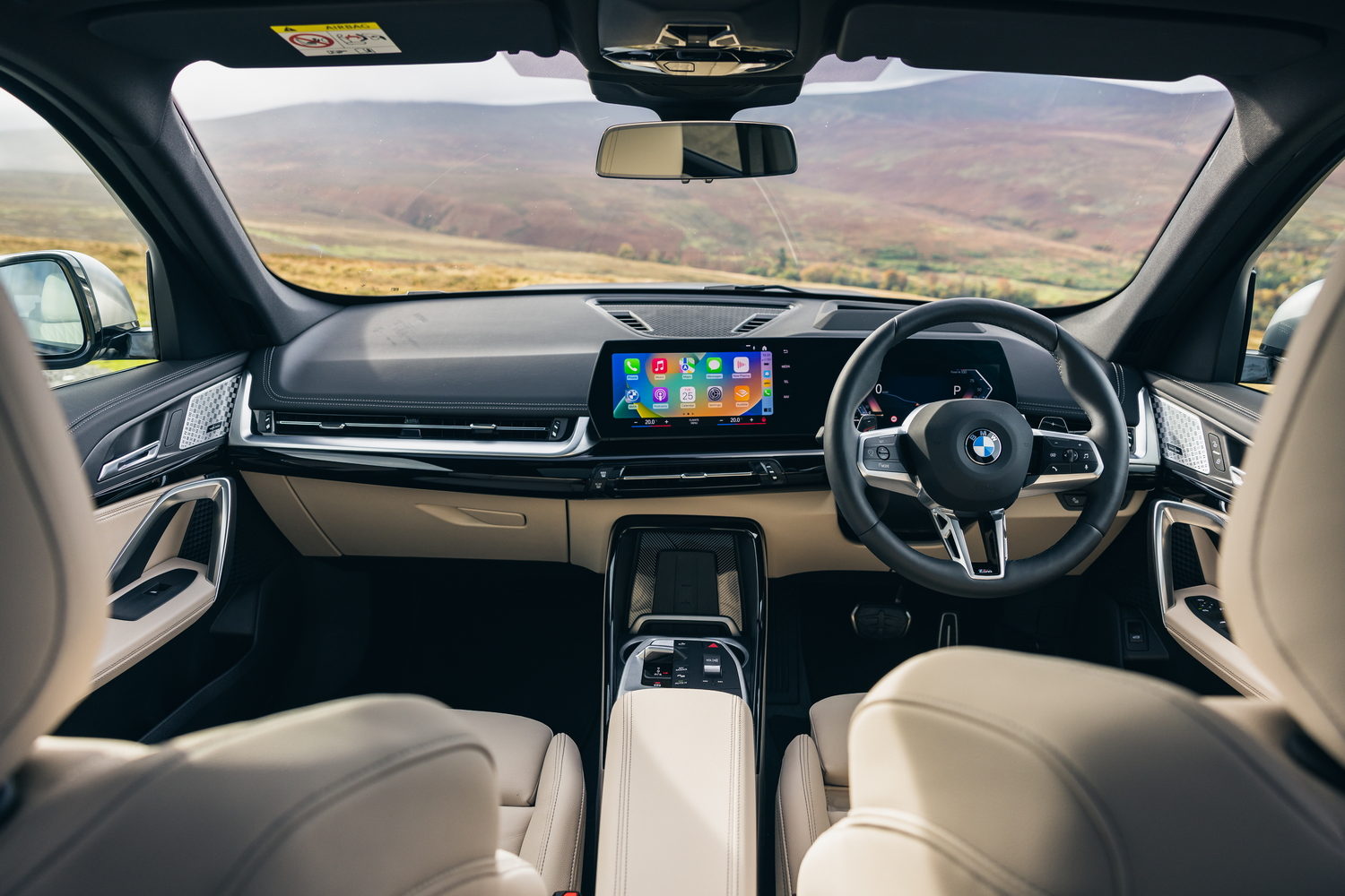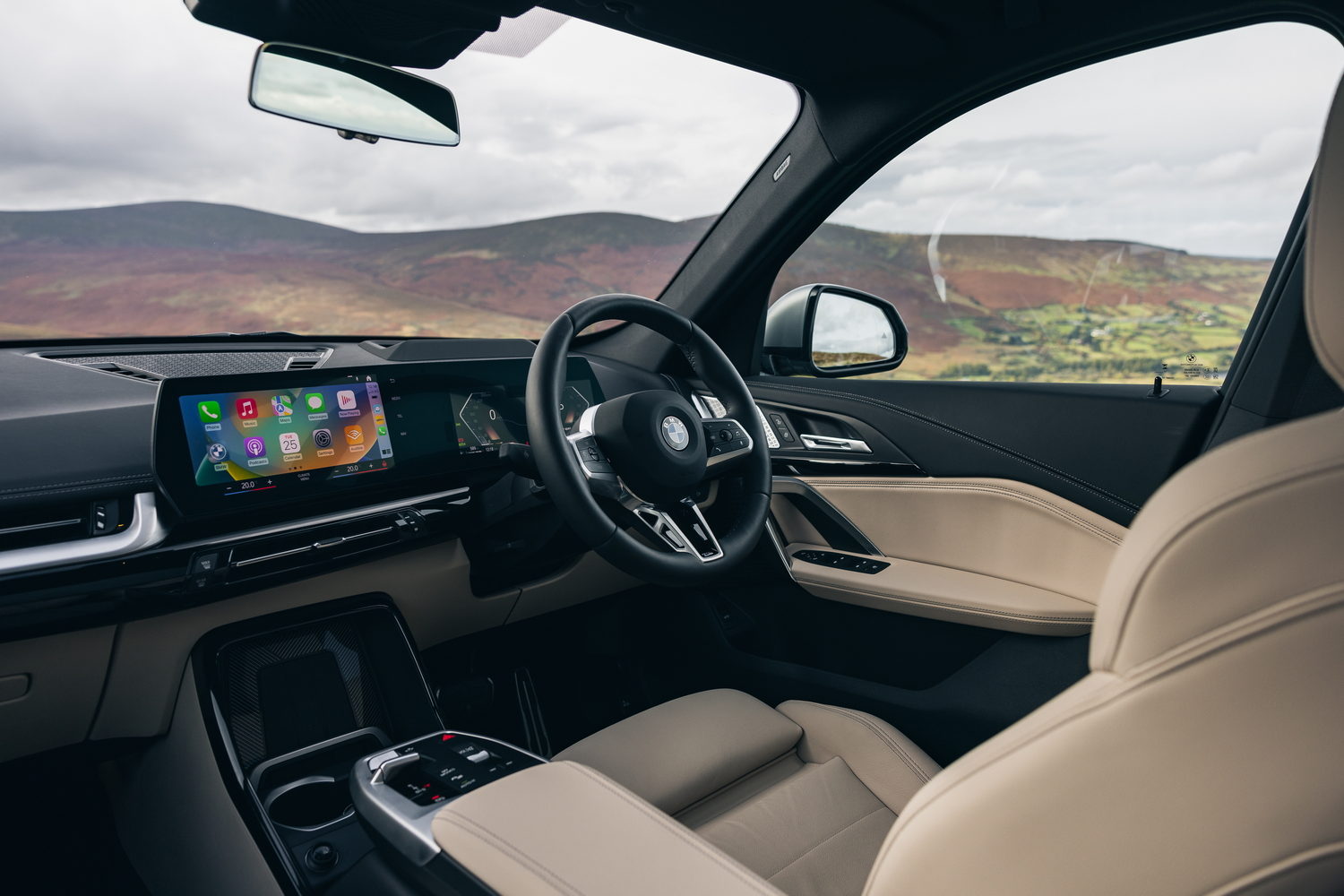 At the top of the range is the M Sport, which starts at €54,735 for the sDrive20i; €55,615 for the sDrive18d; €59,375 for the xDrive23d; €61,925 for the xDrive23i; €57,410 for the xDrive25e PHEV; €60,135 for the xDrive30e PHEV; and €68,775 for the iX1. Standard kit includes 19-inch bi-colour alloys, Alcantara and Sensatec suede and leather trim with blue contrast stitching, aluminium cabin trim and an M Sport body kit.