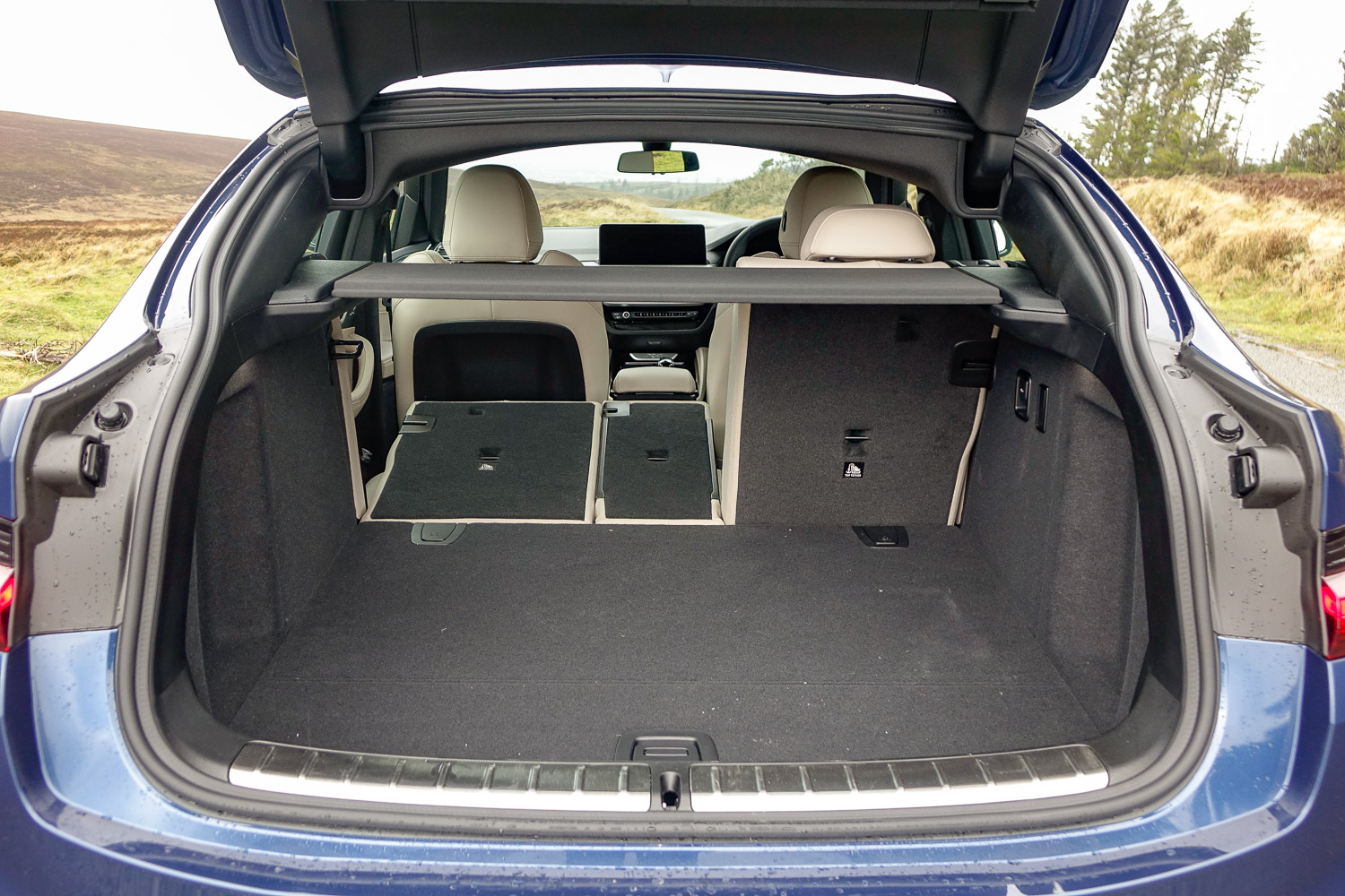 The major downside to the X4's cabin comes from its coupe-inspired styling. The low roof line means that accommodation in the back isn't great for a car of this size. Legroom is adequate, though the large transmission tunnel takes up space, while headroom is obviously not on a par with the X3's. At least the boot is still a decent size, at 525 litres, while the power-opening tailgate opens quickly.