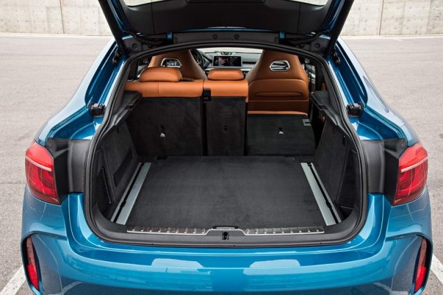The interior, however, is sublime. Every surface, material and control is perfectly judged so the X6 M feels worth every cent of its sizeable price tag. Highlights include the sumptuous fine-grain Merino leather sports seats with contrast stitching (and electrically adjustable side bolsters) and the tactile gearchange paddles, but this car comes with the whole suite of M bits and pieces, including a special M steering wheel, stubby gear lever and more. There's no loss in space or practicality over the regular X6 either, so it's cavernous inside - and even more so in the boot, where there appears to be as much room under the floor as on top of it.