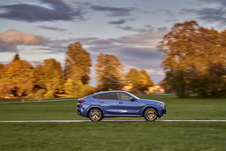 Great. As is the X6's handling. For a chunky behemoth like this, the combination of Dynamic Damping Control and self-levelling air suspension does a near-wondrous job of keeping the massive body in check during hard cornering, while optional active anti-roll stabilisation and an electronically controlled differential lock plus Integral Active Steering (four-wheel steering, for increased agility) further enhance the M50i's cornering prowess. Which is formidable no matter what spec you go for, mainly because of the simply ginormous grip levels proffered up by the Pirelli P Zero tyres that are 275/40 R21 front and 315/35 R21 rear, as well as the catapult-like effects of xDrive traction out of the bends. Quick across ground, the X6 M50i most emphatically is.