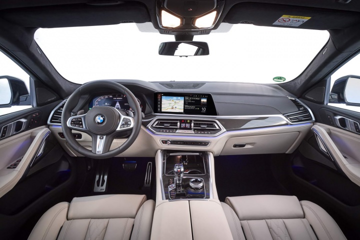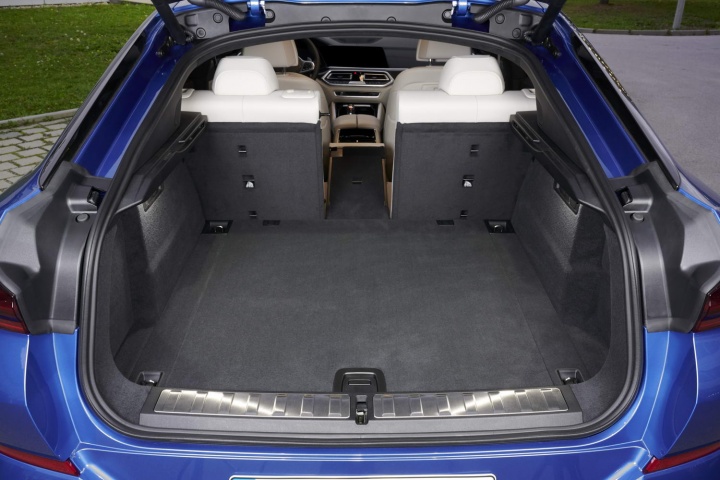 Anyway. Not to matter - nearly half a million X6 Mk1 and Mk2 models have found homes all over the world since 2008, regardless of their appearance, and we have no reason to believe that this one will struggle to find buyers. That's despite a price tag that, here in Ireland, starts perilously close to six figures for an xDrive30d Sport, never mind this €130,000 M50i. So into the cabin we go, to find out if the interior can redeem the X6 somewhat. And it does. Rear space is the issue in these sorts of vehicles, and it's not bad in the X6, BMW scalloping out the roof lining and stretching the wheelbase by 42mm to ensure passengers in the back have adequate head- and legroom. The boot's even decently large, although it's 70 litres down on that found in an X5 with five seats in place and a colossal 345 litres smaller when the rear bench is folded away. Nevertheless, up front is BMW's unusual digital instrument cluster (with the reverse-sweep rev counter), the excellent interface and infotainment this marque is known for, and a sense of deep-rooted quality in all the fixtures and fittings. The lovely cabin gets the X6 M50i a higher mark in this section than its questionable exterior 'styling' deserves.