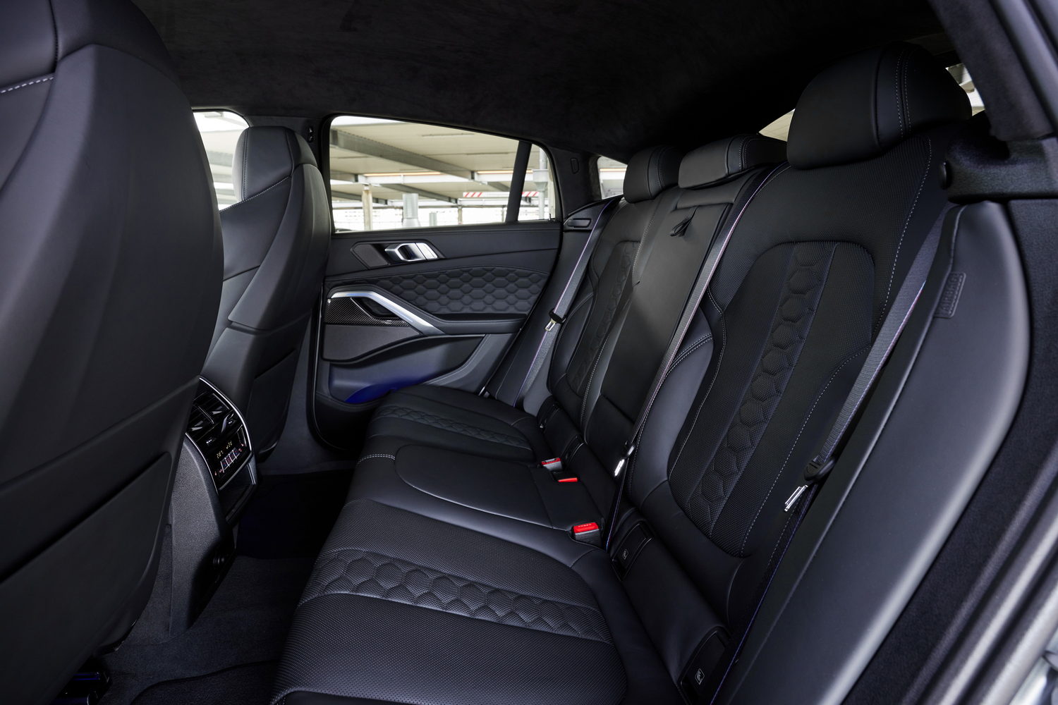 Inside, the X6 follows the X5 with a new dashboard that's crowned by the 'Curved Display' combining the instrument cluster and touchscreen in one massive housing. It's commonplace in the BMW range now, used in everything from the X1 to the iX electric SUV, and it's exceptionally good. The Operating System 8 software is quick and responsive, the displays are sharp and modern, and the menus are generally logical and easy to use. In the case of the updated X5 and X6, the iDrive rotary controller on the centre console has been retained, allowing drivers and passengers to use the screens without touching them. It sounds more complicated, especially for a generation accustomed to touchscreens, but when you're driving it means you spend more time looking at the road and less time glaring at the screen.