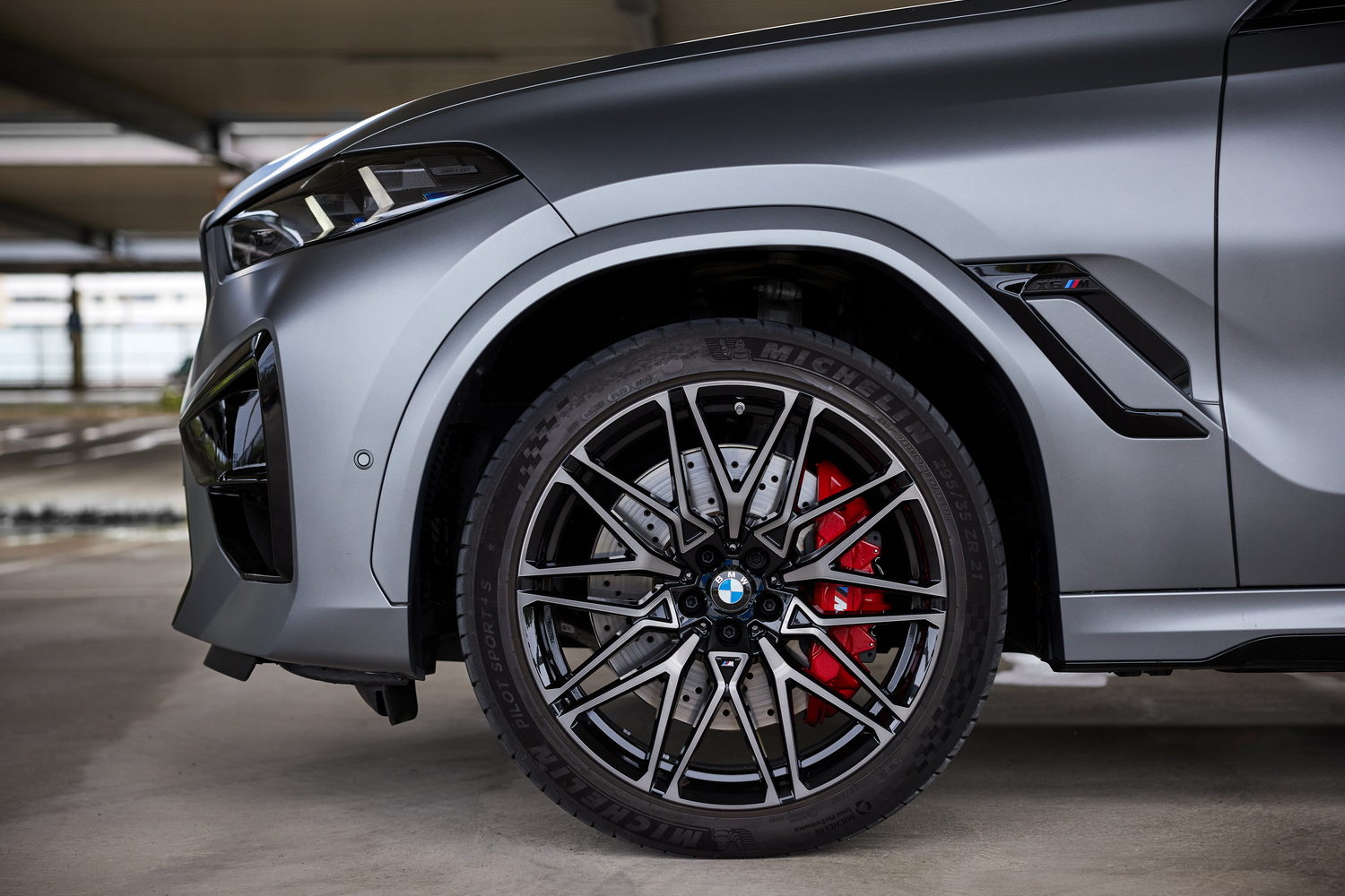 As this is the M Competition version, there are other changes of note on top of the standard car's. Both get a central lower air intake, while the X6 M Competition gets a model-specific spoiler lip for aerodynamic balance. And whereas the X5 M Competition gets a roof spoiler, the equivalent X6 gets a prominent spoiler on the boot lid, while both come with aerodynamic door mirror caps. Both cars also get a prominent rear diffuser and four 'Black Chrome' exhaust outlets, as well as alloy wheels measuring 21 inches in diameter at the front and 22 inches at the rear.
