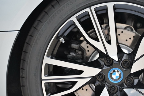 Standard equipment is comprehensive, but BMW will also be offering a new laser headlamp system in the i8 later in the year. It'll also be available with optional carbon fibre wheels, replacing the standard alloys and dropping a whopping 3kg of mass from each rim - to the benefit of unsprung weight. No prices have yet been confirmed, but don't expect these options to be cheap.