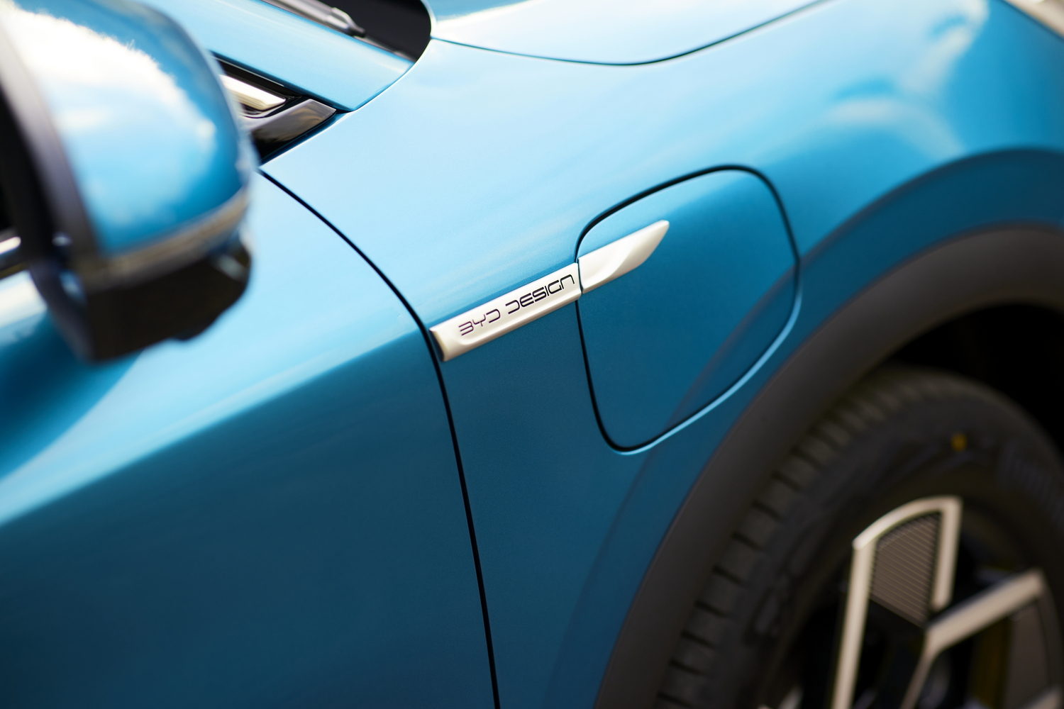 Though in no way offensive or off-putting, neither is the exterior style of the BYD Atto 3 particularly memorable. It works best with bright colours to give it some life. The front end is neat enough, though, with sharp, slender headlights joined by a silver-coloured strip carrying the BYD name. The smooth silver finish can be found on the roof rails and side window surrounds, too, and on the D-pillar, disguising its thickness somewhat. The rear end is quite generic, sticking to the current trend of full-width LED taillights above a rather featureless tailgate. The only item of note back there is the 'Build Your Dreams' script, which some will find a little cringeworthy.