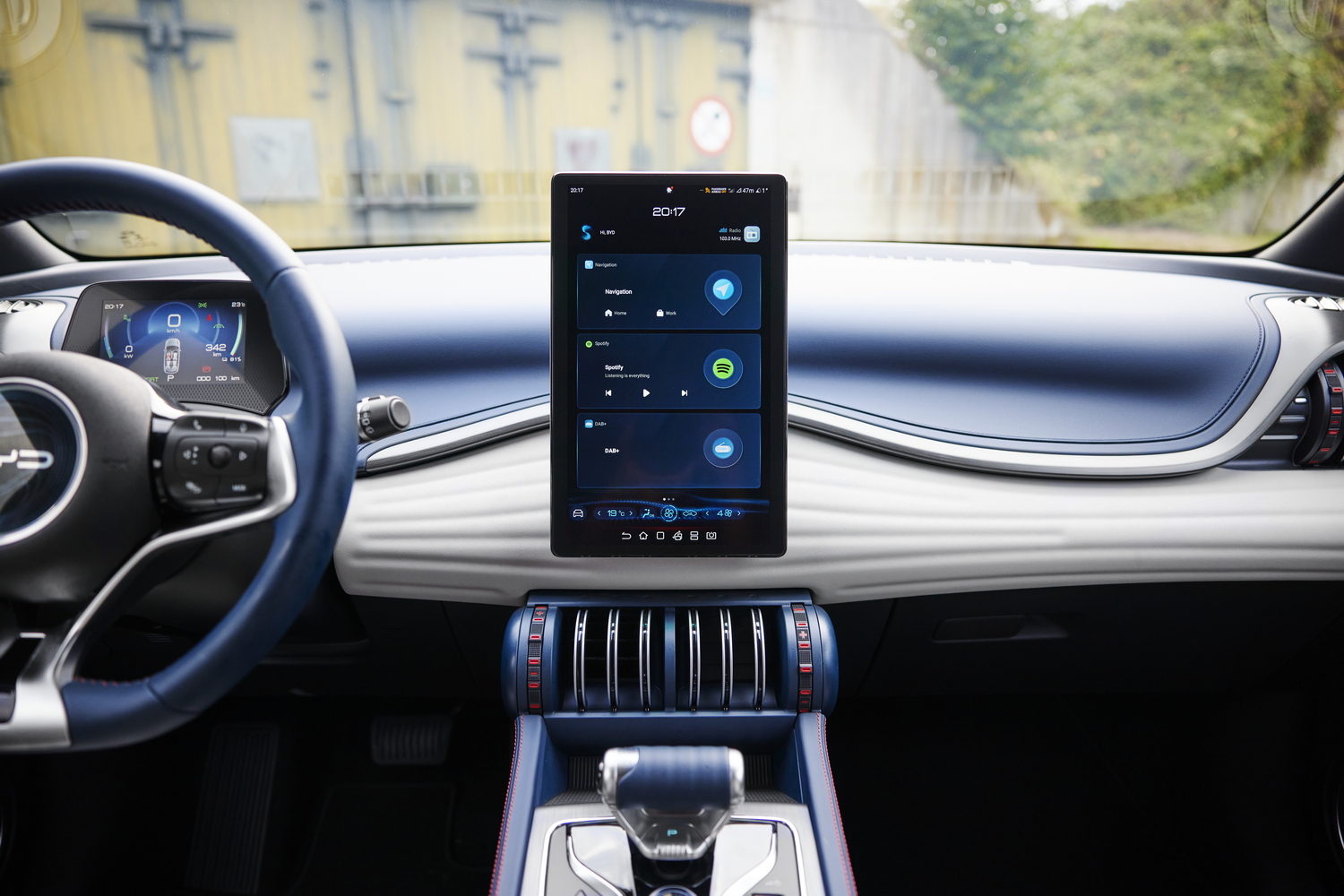 The screen has a party trick, too. Press a button on the chunky steering wheel and the display electrically rotates through 90 degrees. Use navigation with it in this orientation and you'll wonder why more car makers don't adopt this layout.