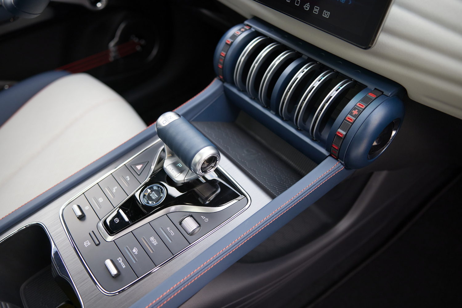 We're not so keen on the Atto 3's air vents. They appear to take their influence from aircraft controls - as does the more successful drive selector - but they're comically oversized and don't offer a lot of adjustment of the airflow. There are other unusual features found on the door panels. Instead of conventional door pockets, there are three strong strings to hold items in place. Once someone points out that they look like the strings of a guitar attached to the door speakers, you'll never again see them as anything else.