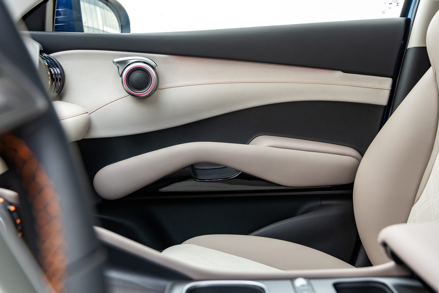 There's still plenty of individuality inside the Atto 3, as it keeps the air vents which, as one colleague on the launch opined, look like a group of Oreos stacked side-by-side, as well as odd rotary door-release handles, a swoopy dashboard architecture and love-'em-or-loathe-'em guitar strings (they really do play a tune if you twang them) on the door cards.