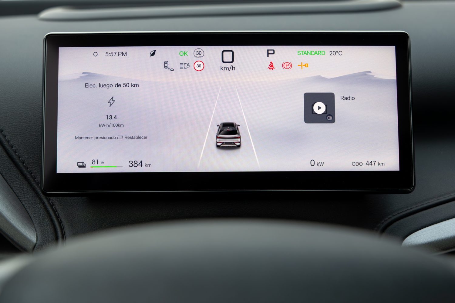 During an 80km test loop through the mountains outside Madrid - which included some fair ascents and a long run on a motorway - we managed to achieve an indicated consumption on the 8.8-inch driver's display of 18.4kWh/100km.