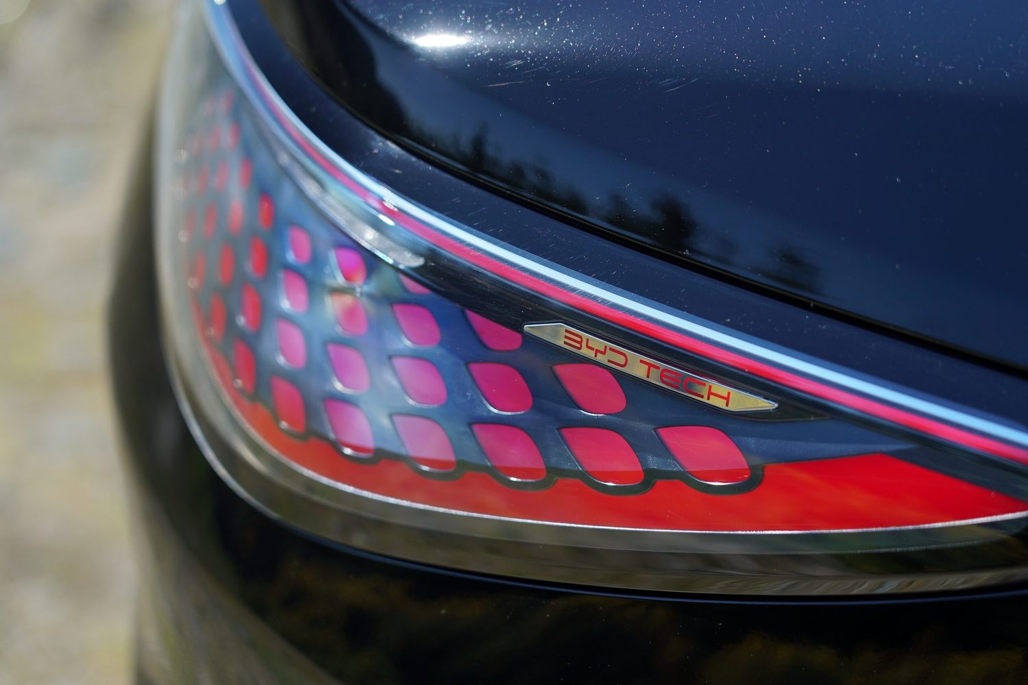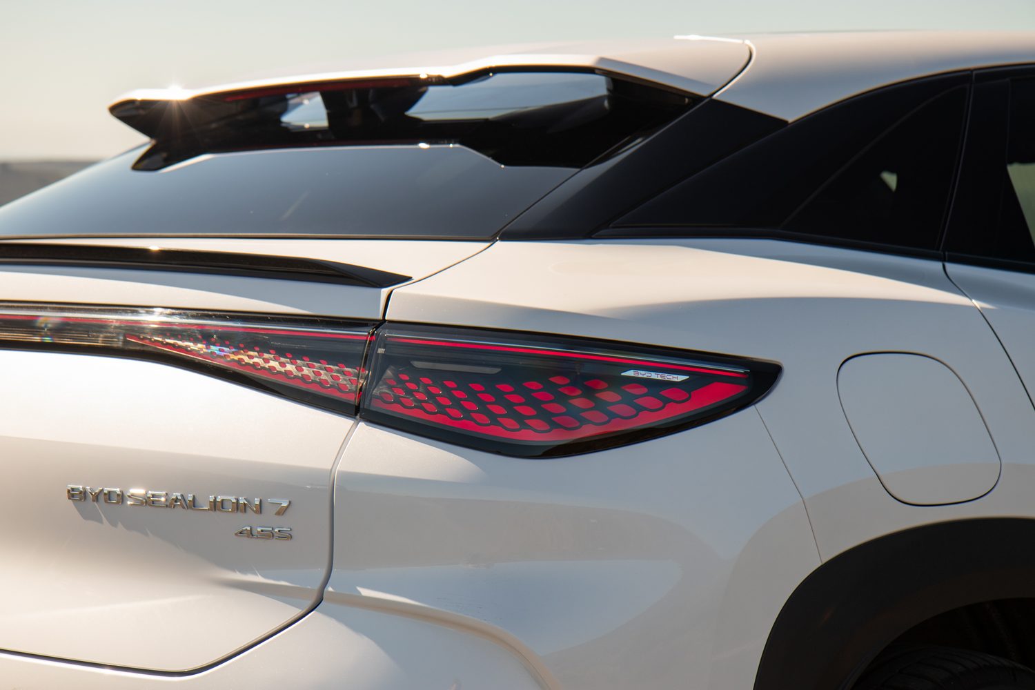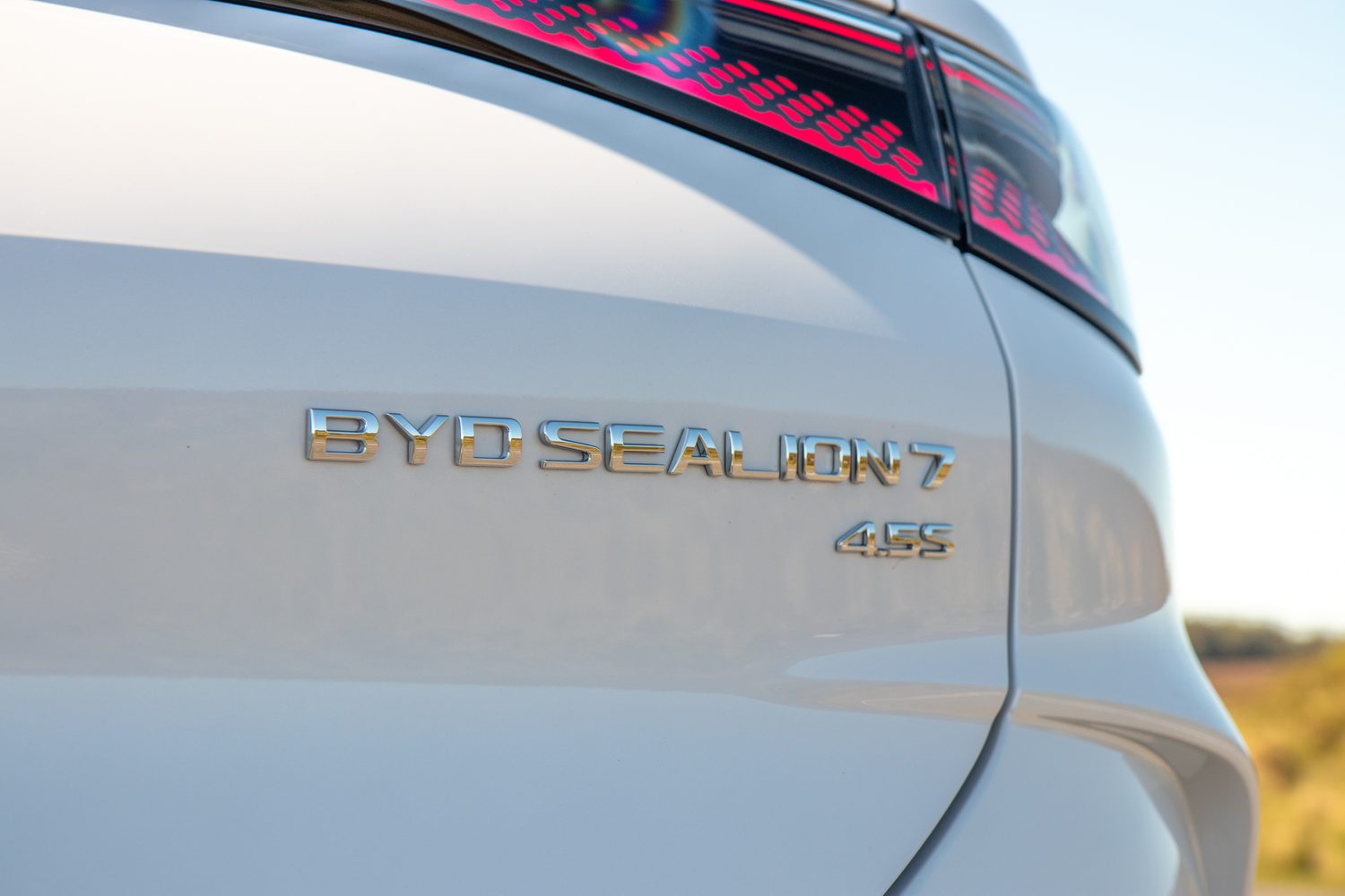 At the rear, the brake lights - almost tear-drop shaped - have an intricate pattern within them, and below those you'll find both the "Sealion 7" badge and, for the all-wheel-drive Excellence version, the 0-100km/h time of 4.5 seconds. No shrinking violet, this BYD.