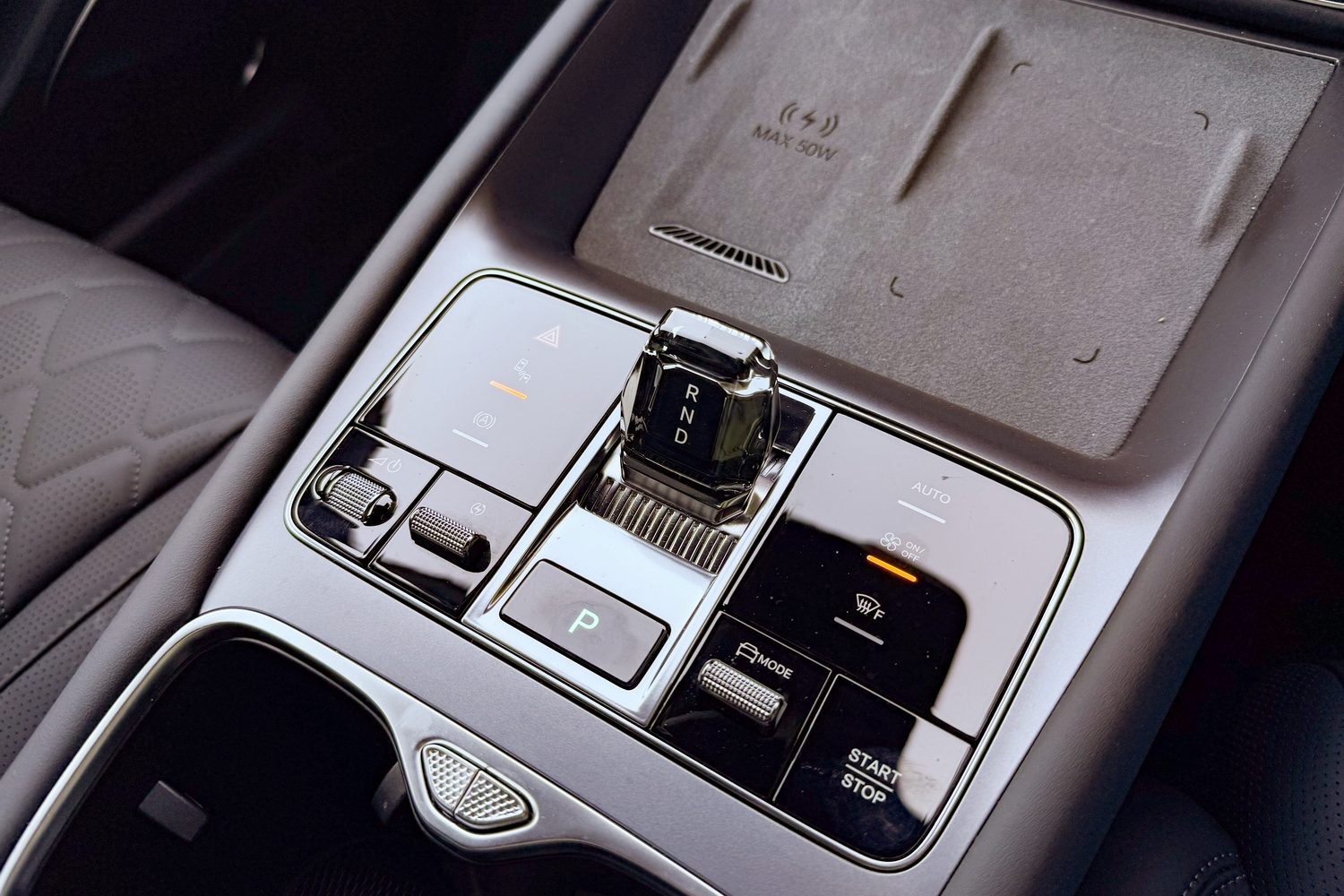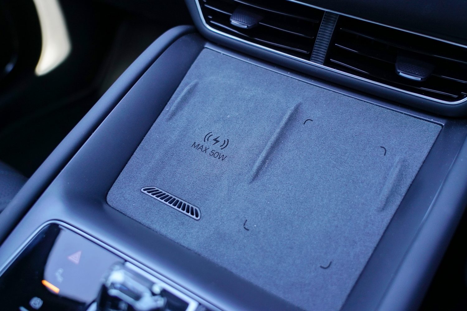 There's a wireless phone charging pad on the centre console (it looks like there's two, but there's just one, with a ventilation port so your phone doesn't heat up too much) and that works at up to 50 watts.