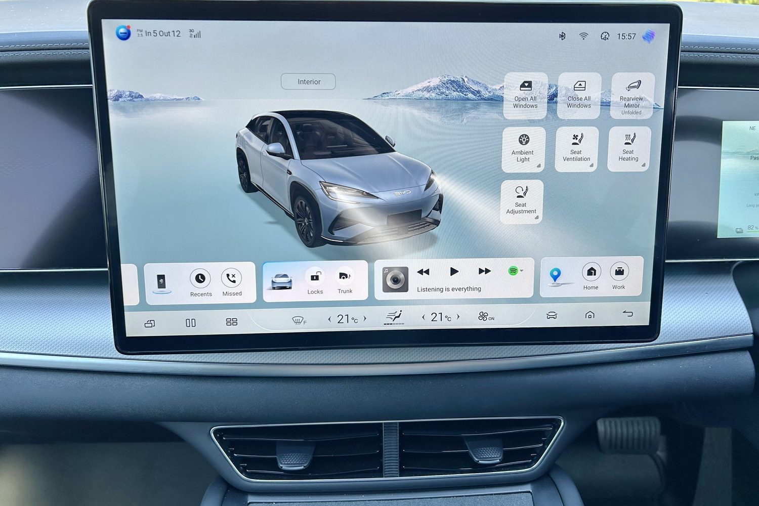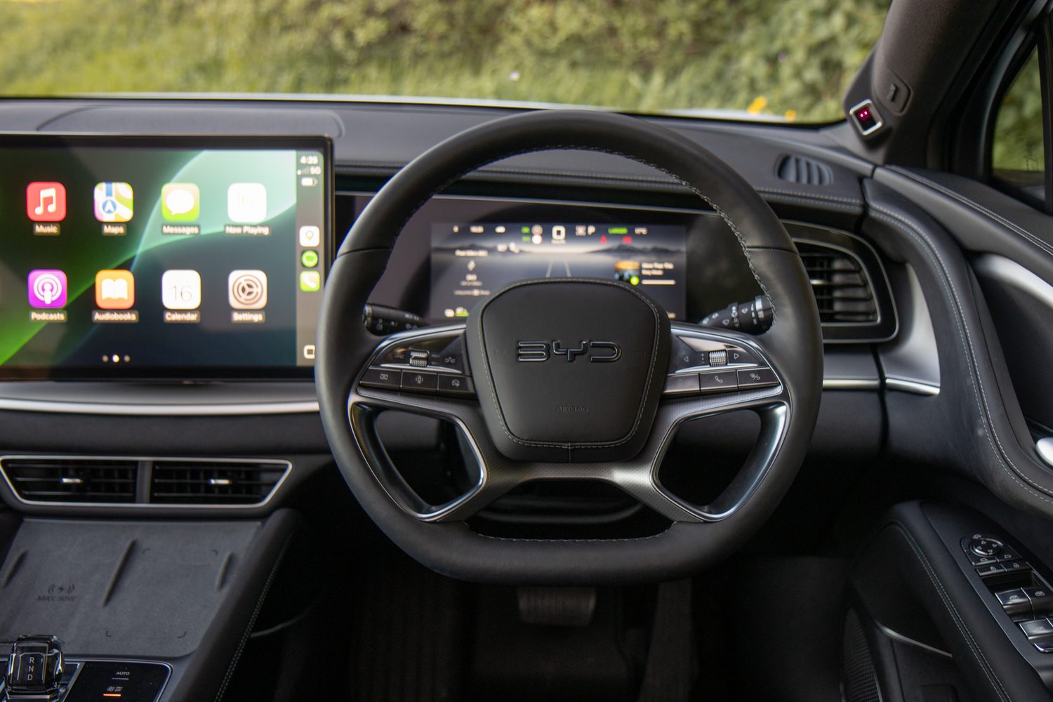 The four-spoke steering wheel with its off-square centre looks a little classier than the circular three-spoke affair in the Seal, as does the more solid-looking dashboard background. Nothing groundbreaking here, but plenty that impresses.
