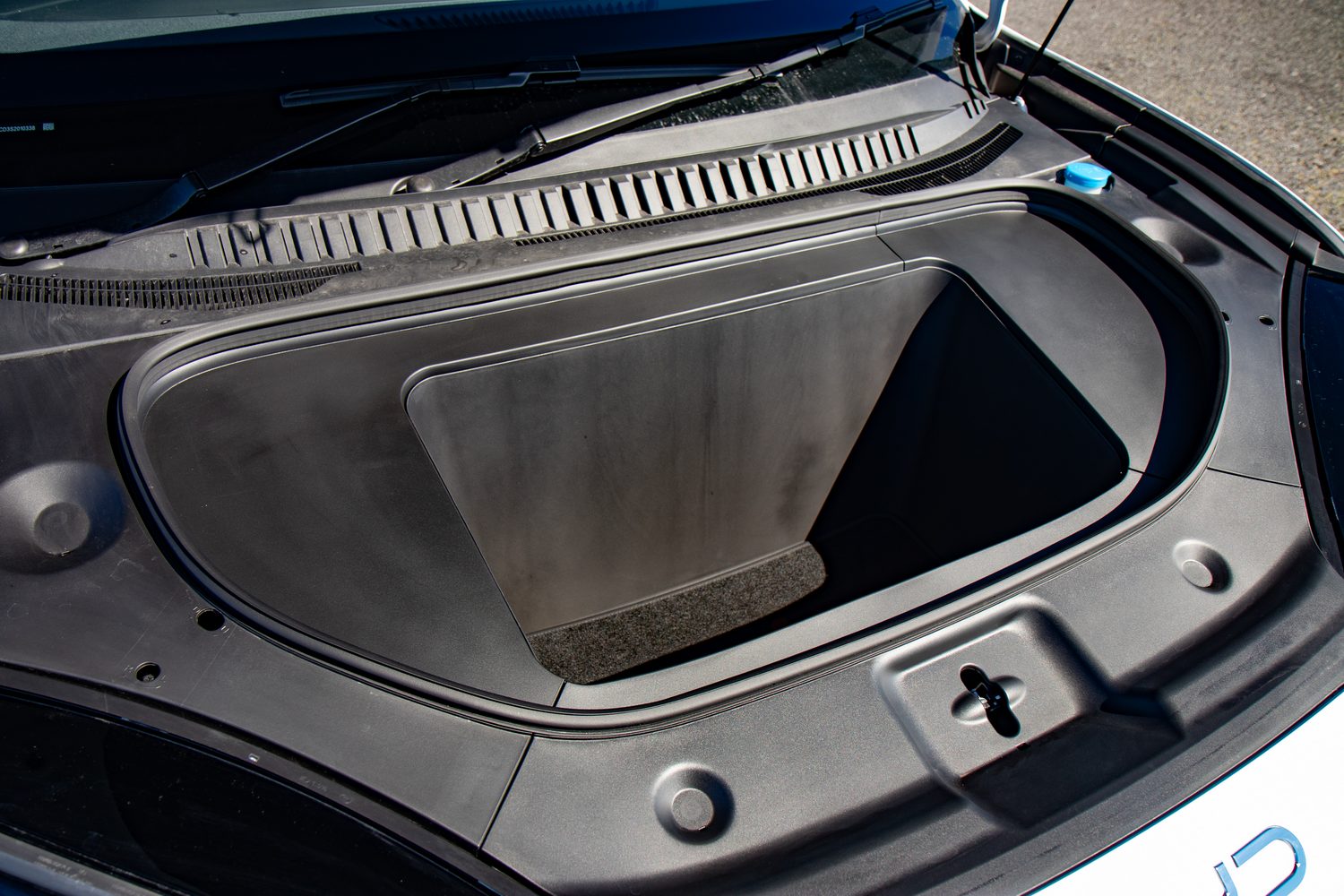 Much of that capacity is given over to underfloor storage, which is handy for charging cables, but arguably they're better off being kept in the 58-litre 'frunk' in the nose. With the adjustable boot floor in place, there's little-to-no loading lip, and the boot opens nice and wide for loading bulkier items.