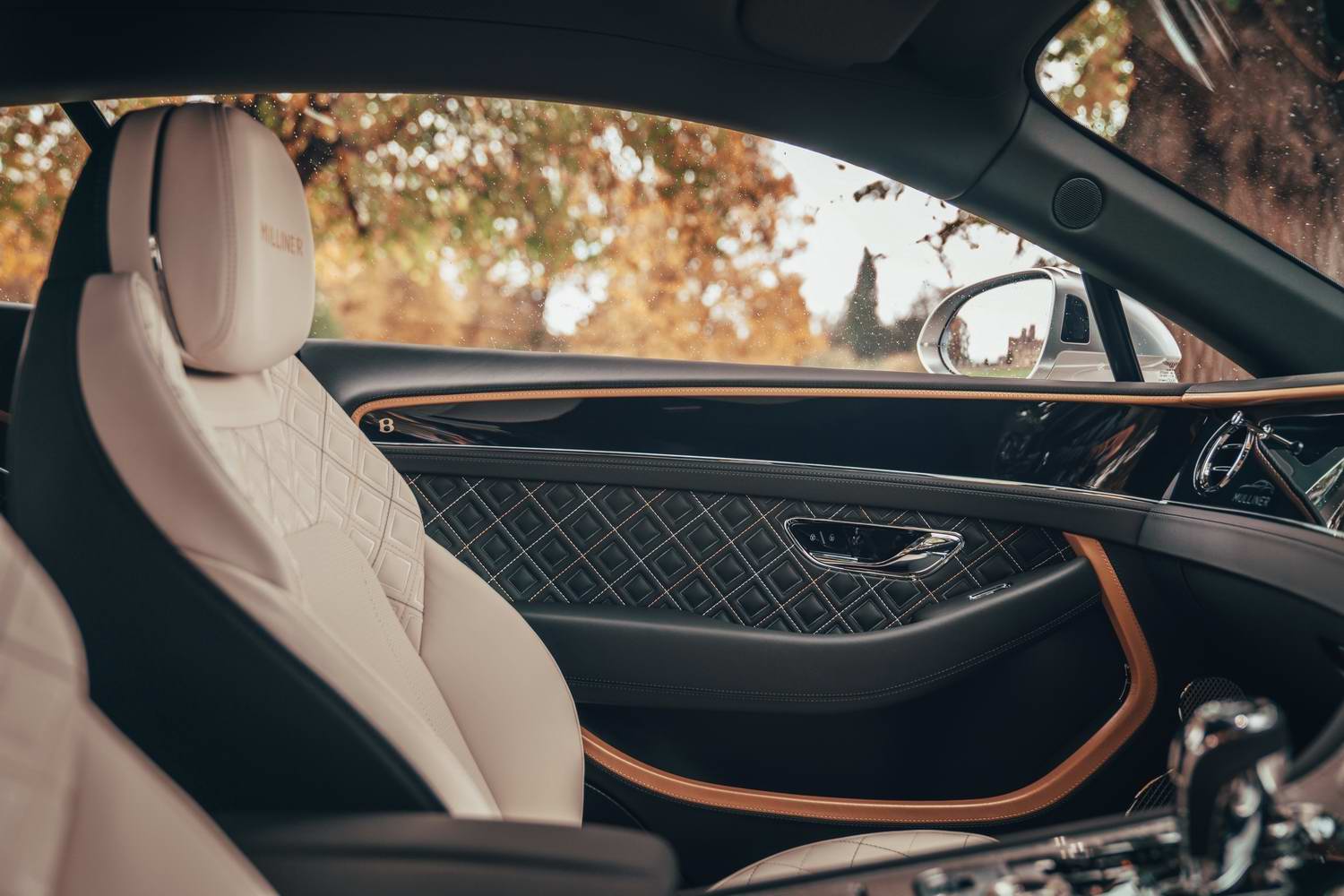 There are also 'Mulliner' illuminated door sills once you swing open the Continental's hefty great portals, allowing access to an interior that is said to showcase a level of choice and customisation that only Mulliner can provide - the 'pinnacle of luxury'. This includes eight different and bespoke colour splits of the primary and secondary hides, plus a third hue as part of a design line that circumvents the door cards and then runs across the top lip of the dashboard. As you'd expect given the involvement of Bentley's coachbuilding division, the Mulliner Driving Specification that is normally a five-figure option on a Continental GT is standard-fit, so you get diamond-in-diamond stitching on all the exposed leather; this results in 400,000 stitches throughout the cabin, with 712 in each and every diamond. Mind-boggling attention to detail, this - especially as there's more that 115 metres of thread involved, as well.