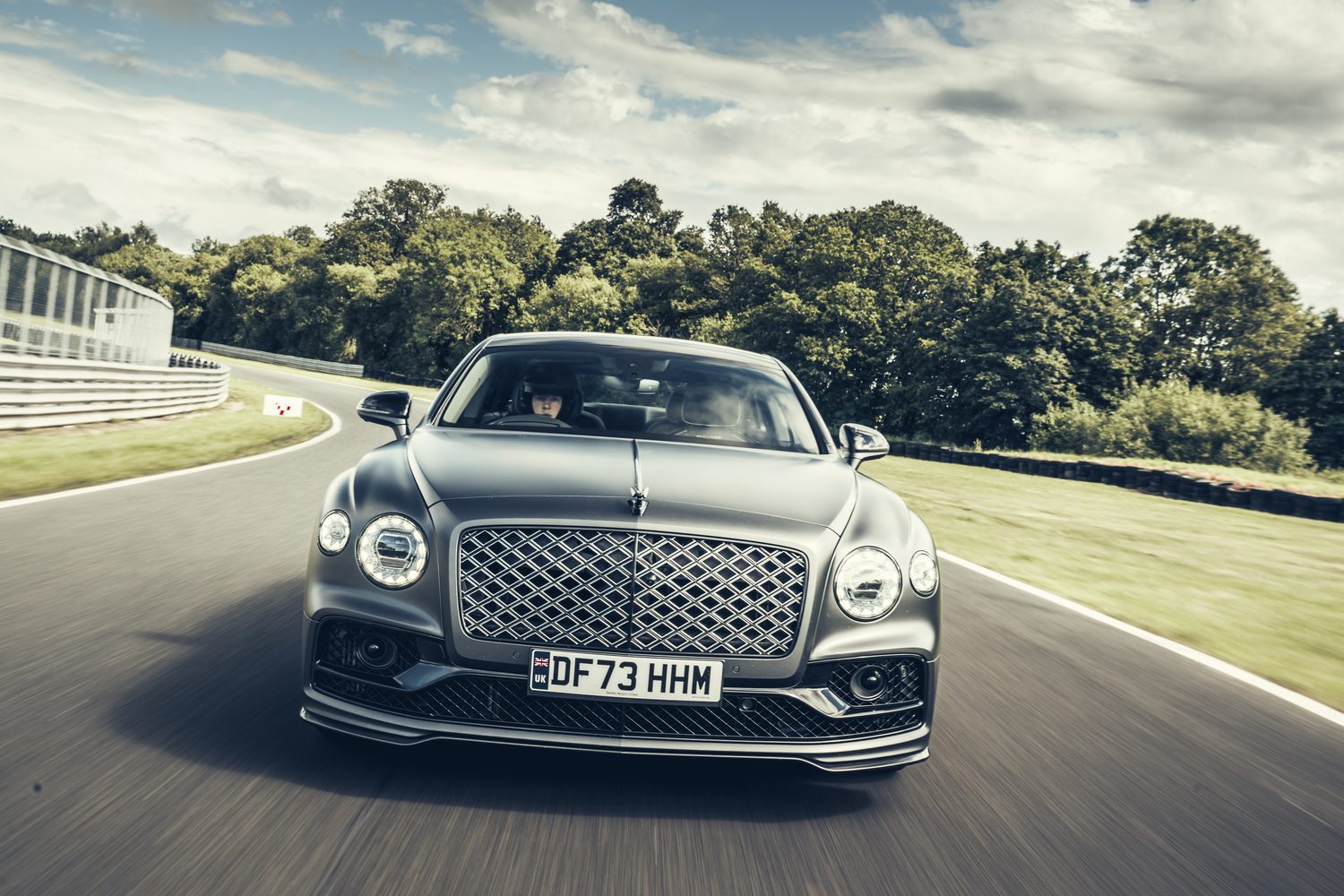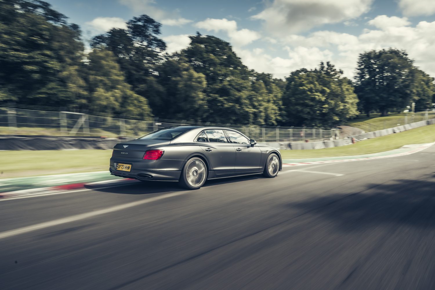 Of course, muscling the big Flying Spur around Oulton, a typically tighter and narrower circuit that is better suited to touring cars and light single-seaters, feels a bit mischievous and bizarre, but thanks to the Bentley’s excellent steering, its trick suspension and the traction benefits of the four-wheel-drive system, it’s far more capable on track than you’d either ever credit it for or than it ought to be. And then, on the cool-down lap, the Flying Spur’s supreme refinement comes to the fore, as it settles down to near-silent running (again, like an EV) and soaks up every lump and bump in the track as if they just weren’t there.