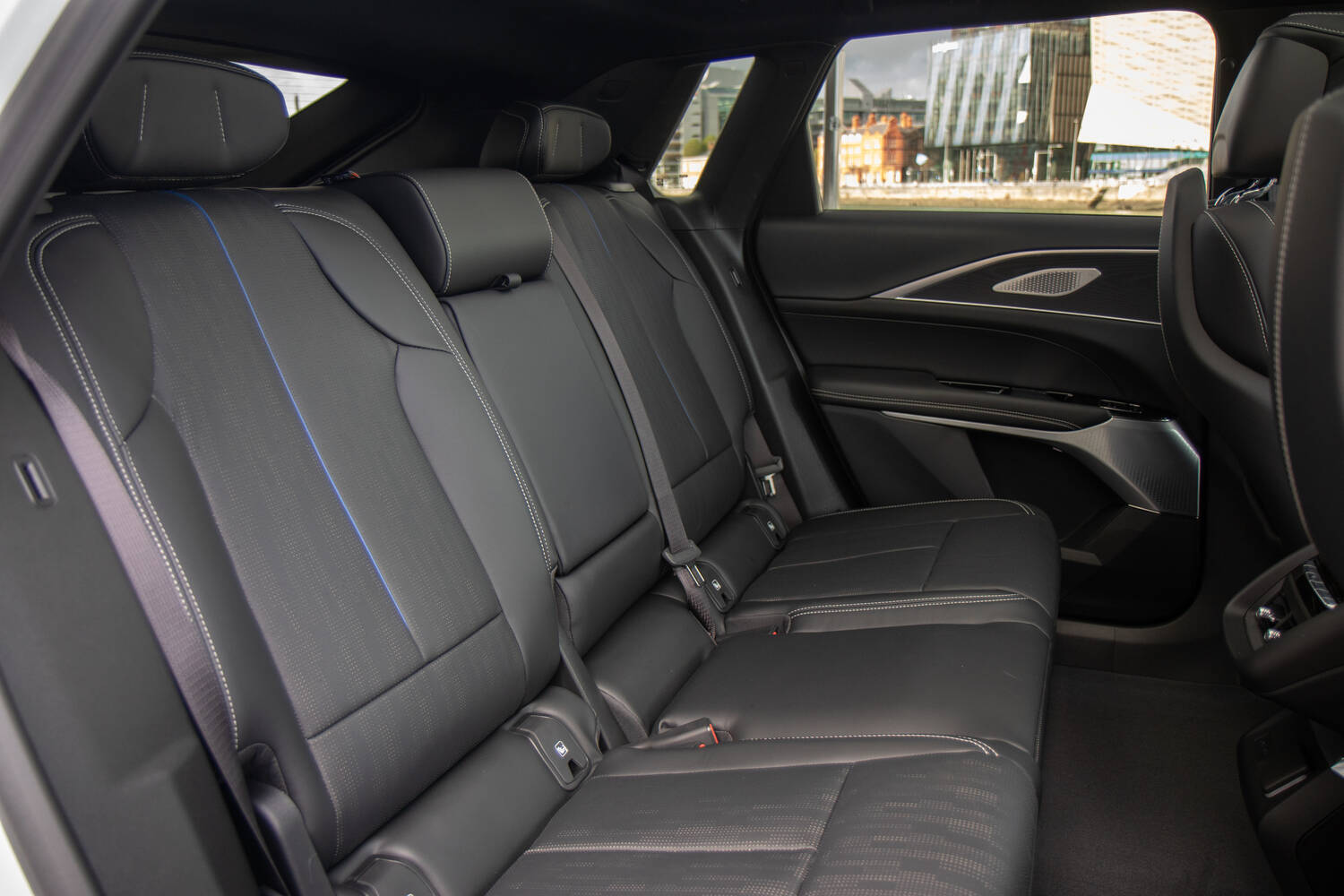 Headroom is a touch tight, certainly with the big glass roof and its sunshade eating into space, but it's adequate and will only be an issue for the exceptionally tall. The rear is well-appointed too.