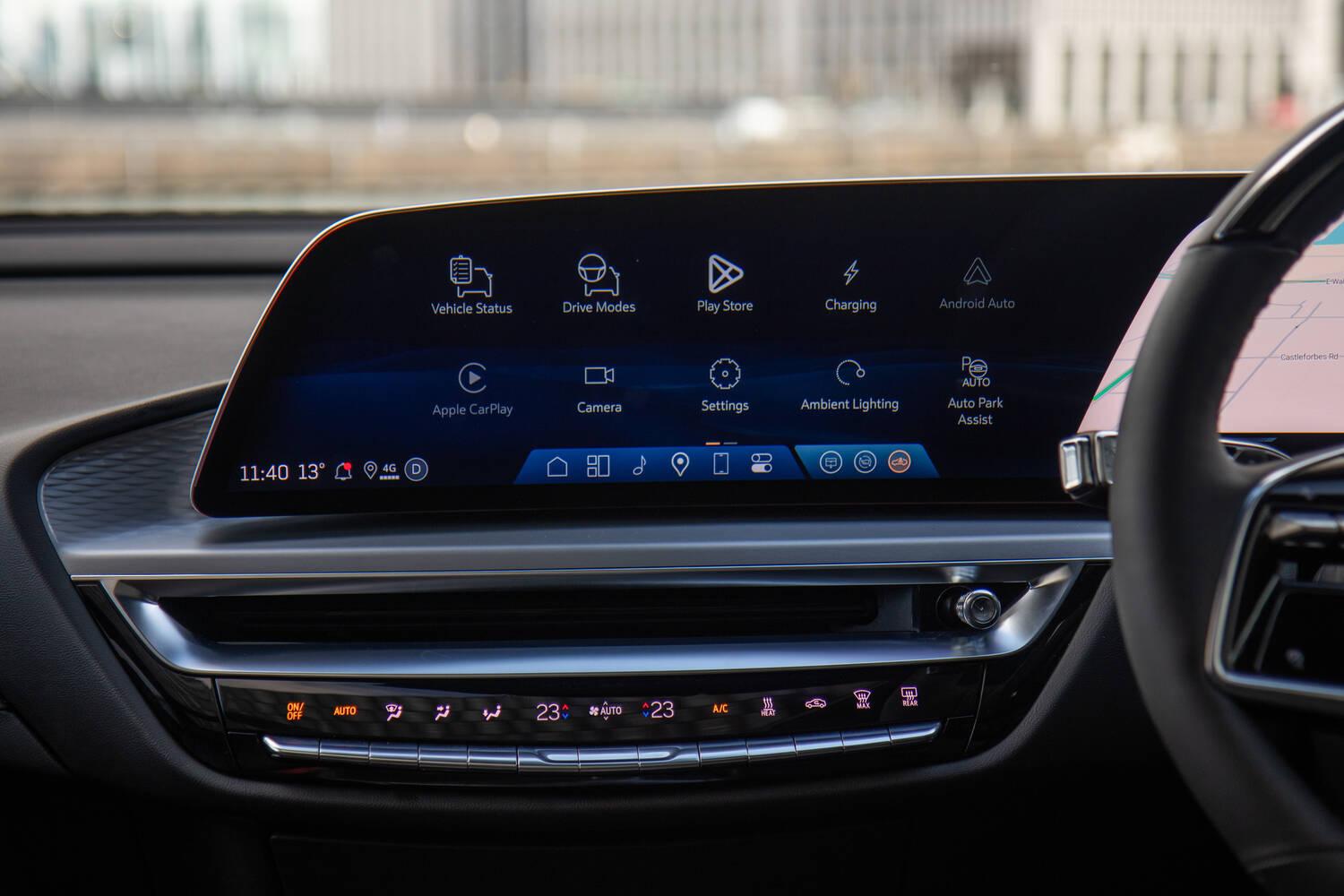 On the big screen, the Lyriq's software is Google-native, so you get Google Maps for the navigation, into which you can log and bring all of your personal searches and history with you. There's also, of course, Android Auto and Apple CarPlay, although the latter looks a little underwhelming, displayed on an inset screen-within-the-screen.