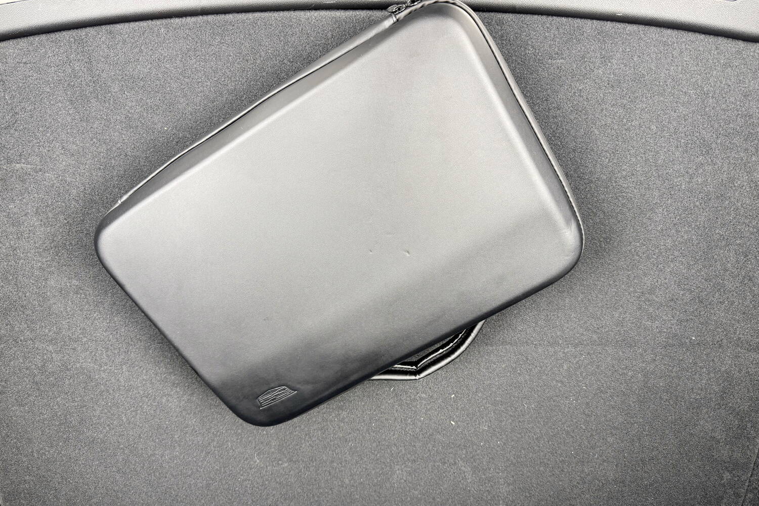 That does include some under-floor storage, in which you'll find one of the Lyriq's nicest - and most Cadillac-like - touches. For stowing your Type 2 charging cable, most car makers will give you a simple nylon bag. Not Cadillac, which instead gives you a sleek attaché-style briefcase, complete with a monogrammed Cadillac badge.