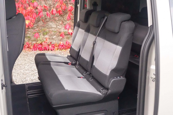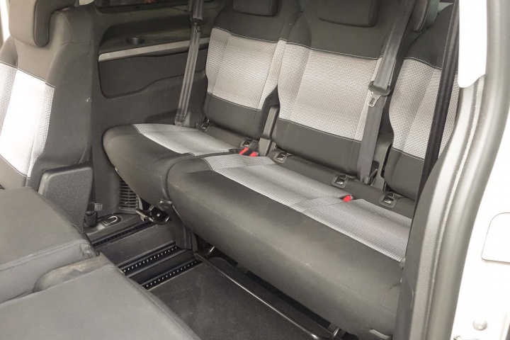 The rear of the SpaceTourer is where you'll notice its CV roots most, as it's square and upright. Sadly, that means a huge tailgate, so you'll need lots of space behind the car when you park up if you intend to access the boot. Cleverly, the glass window can be opened separately. The upshot of such a boxy shape is, of course, interior space. Here we're testing the medium length car with eight seats (there are three different versions with up to nine seats). Sliding doors allow easy access to the back and all eight seats can genuinely accommodate a real adult. They slide, the seatbacks tilt and, if you have space to store the chairs (and you don't have a bad back, as they're very heavy and bulky), all six rear seats can be taken out relatively simply. There are even six ISOFIX mounting points. Given the number of reader questions we've had asking which cars fit three child seats in one row, the SpaceTourer will now be on our list of stock answers - it does that AND another three in the row behind.