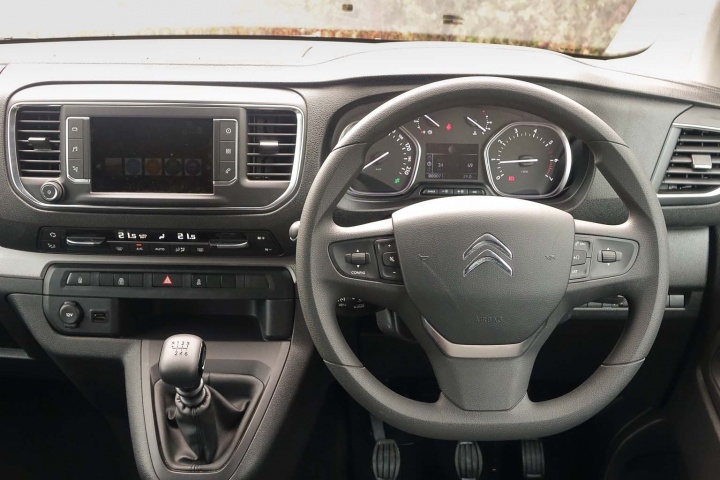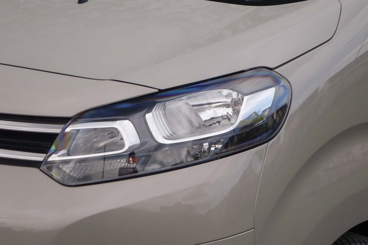 It was developed in partnership with Peugeot and Toyota and they all sell commercial vehicle versions too, so, being unkind, the Citroen SpaceTourer is a van with windows. And yet it's not awful looking when you approach it with that in mind. Up front there are nifty looking headlights, LED daytime running lights and a big toothy grille to distract you from the narrow, but tall proportions, and that stubby nose gives the front end an oddly attractive look. The wheels are of a decent size and pushed right out to the extremities of the car, which aids its appearance, though look closely and you'll spot plastic wheel covers, styled to look like five-spoke alloy wheels.