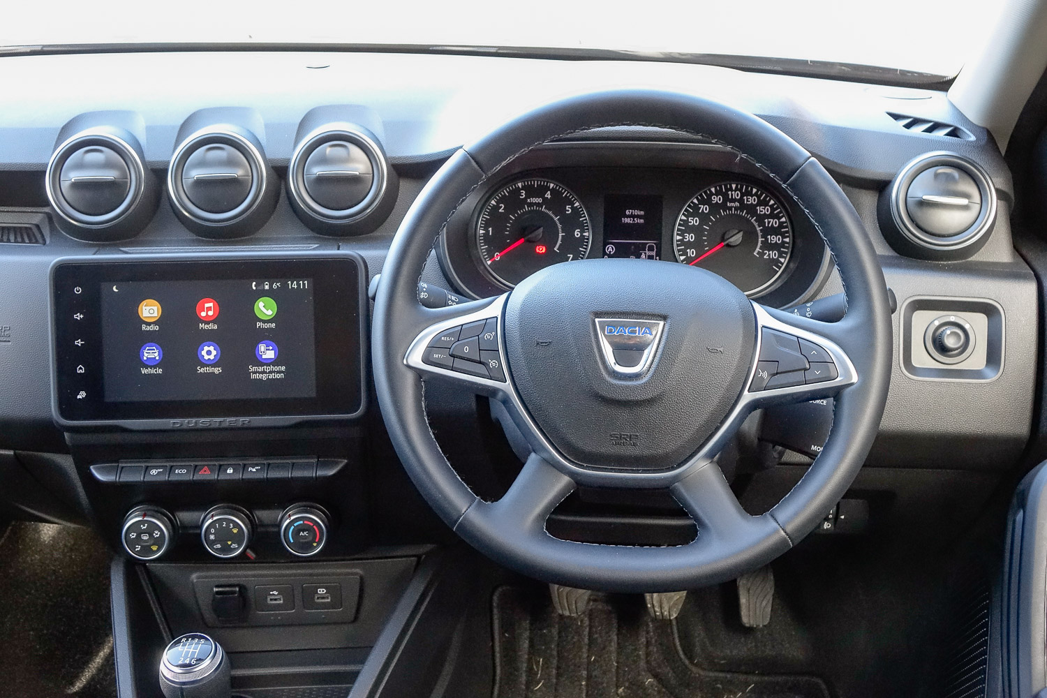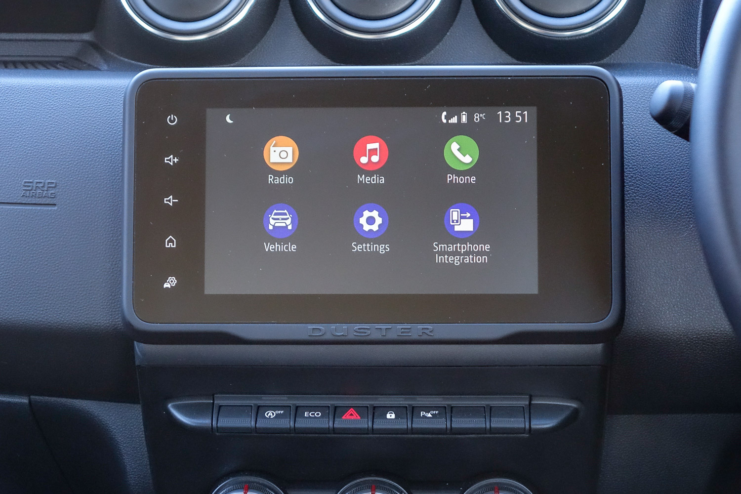 Though the original Duster could feel pretty basic, the current model is a lot better in this regard, thanks to neat switchgear and controls that have been borrowed from parent company Renault. Really, the Duster no longer feels like the budget machine it once did, especially with our Comfort-spec car's leather-trimmed steering wheel and eight-inch touchscreen infotainment system.