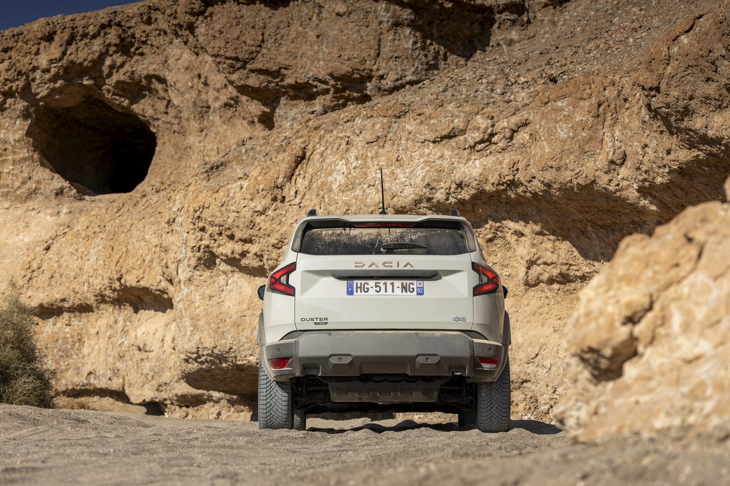 The rear overhang is kept to a minimum to improve the car's departure angle. Underlining Dacia's pragmatic approach, both the Duster Hybrid and the 4x4 identifications are stickers rather than proper badges, but the Dacia wordmark above the registration plate is a more permanent fixture.