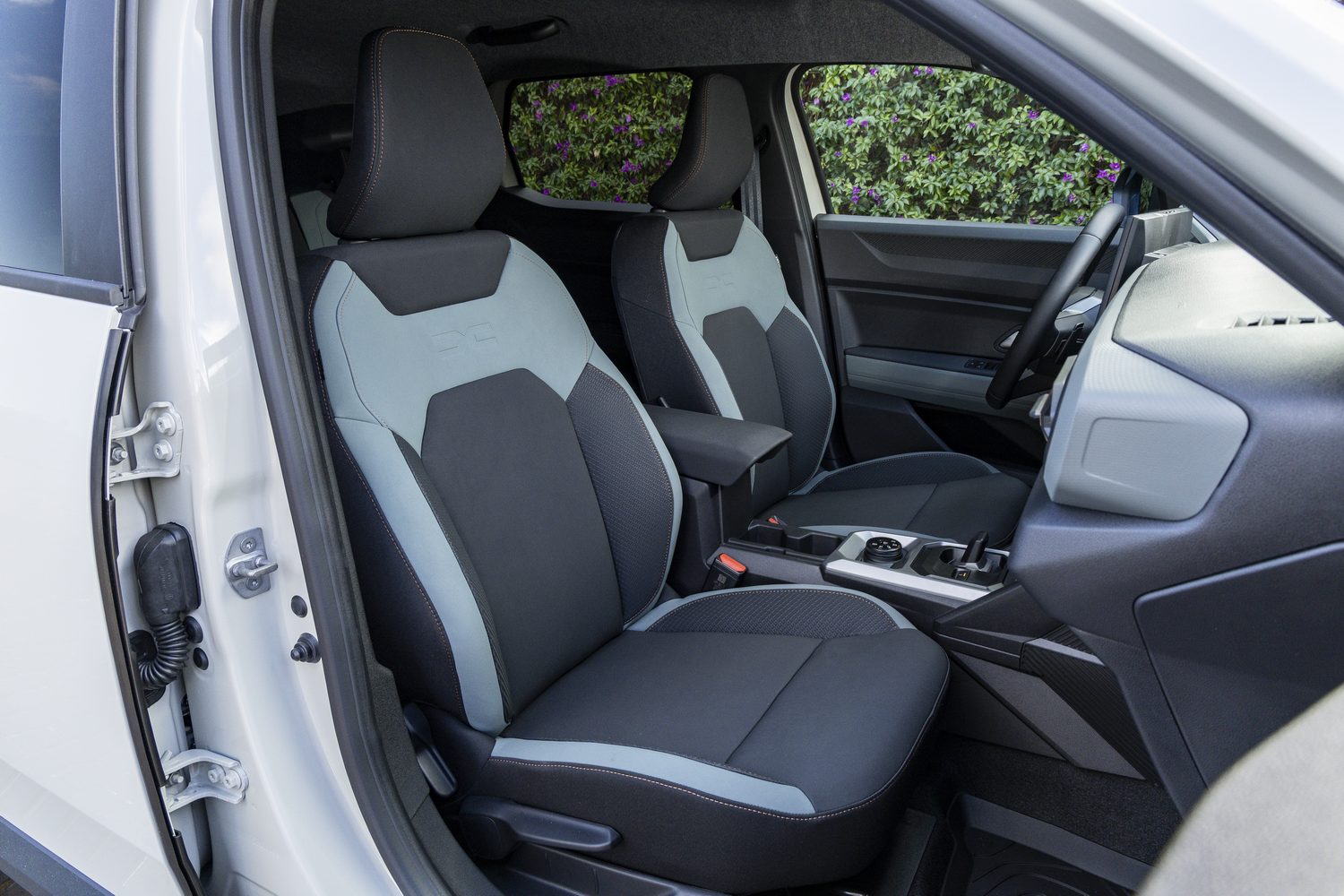 Different upholstery options are available for the Duster depending on the grade. It starts with a simple dark grey fabric on Essential trim, with mid-grade Expression and Journey models getting a denim-like upholstery that includes a reflective Dacia logo on the seatbacks.